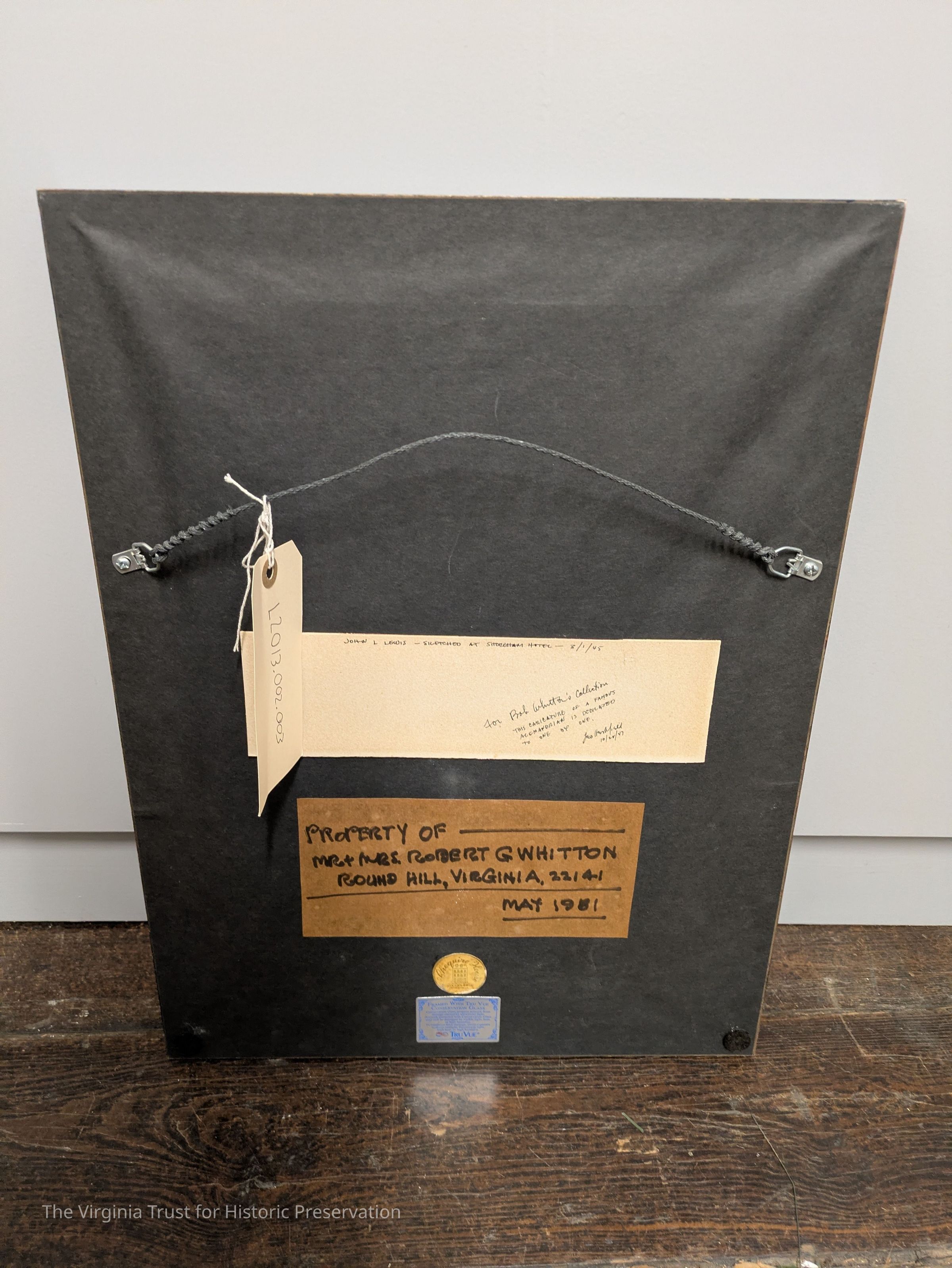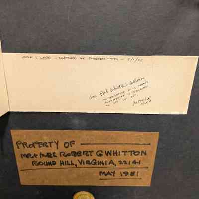 A note from the artist (name illegible) giving the sketch to Bob Whitton in 1947 is on the back of the sketch. Includes artist signature.Dimensions