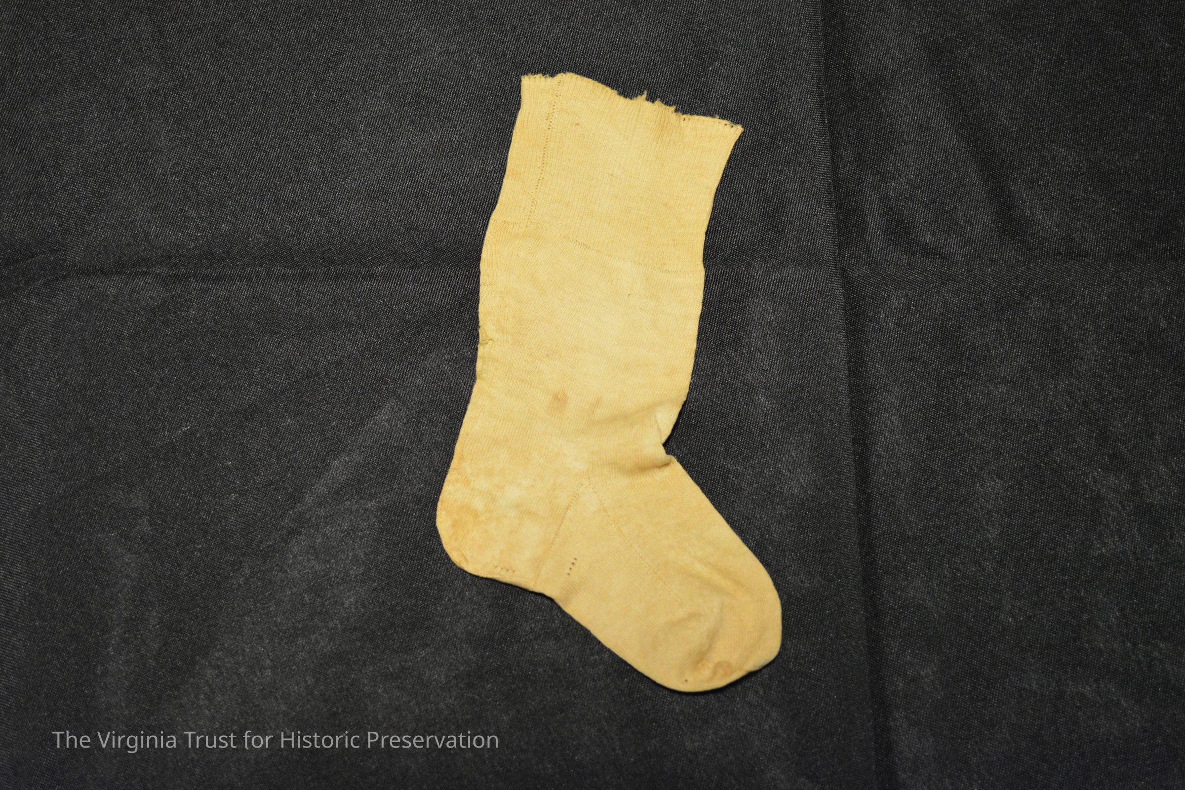 Cream colored cotton child sized single sock.