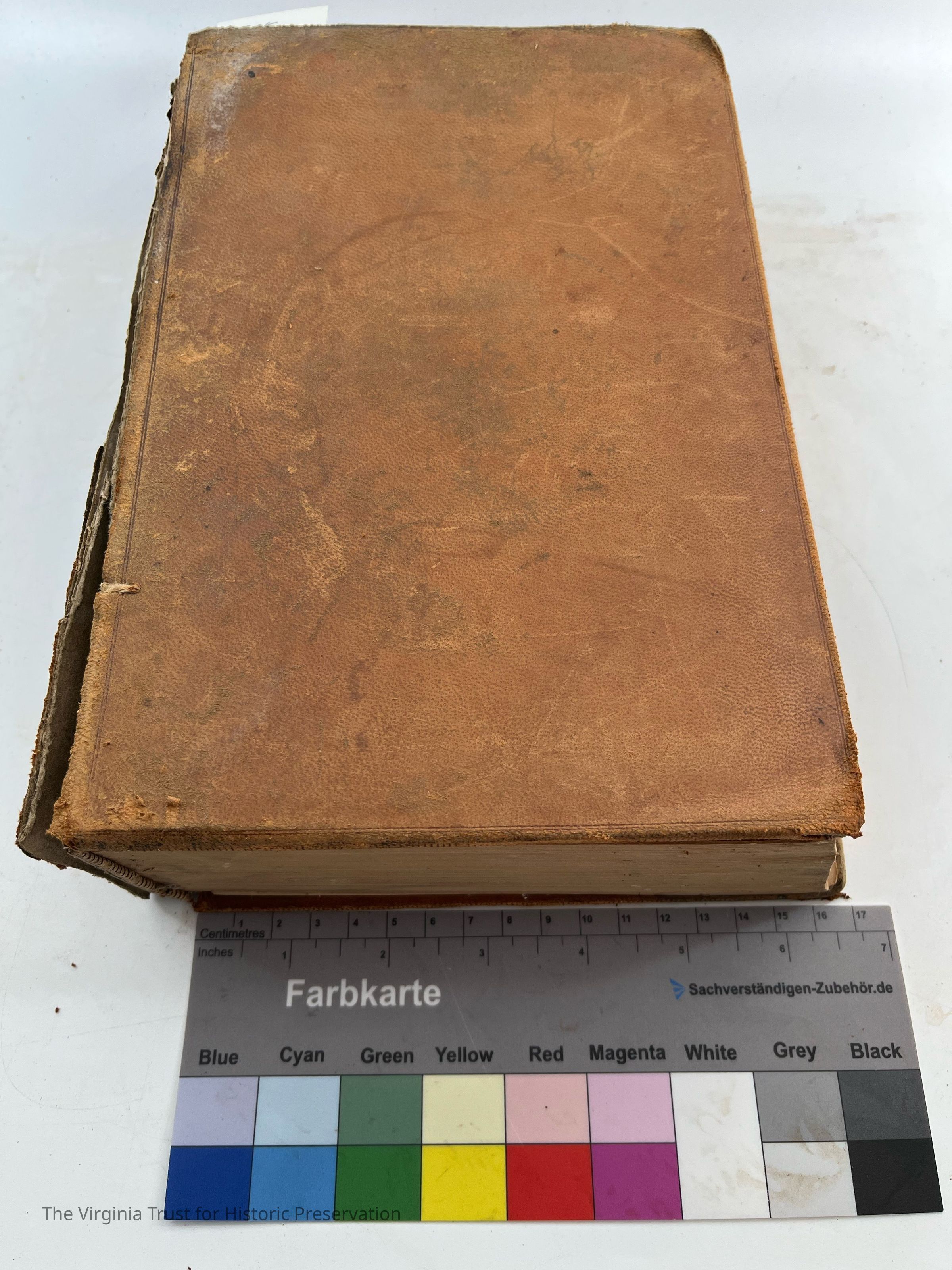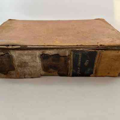 Tan colored front cover, intact binding, worn/readable spine