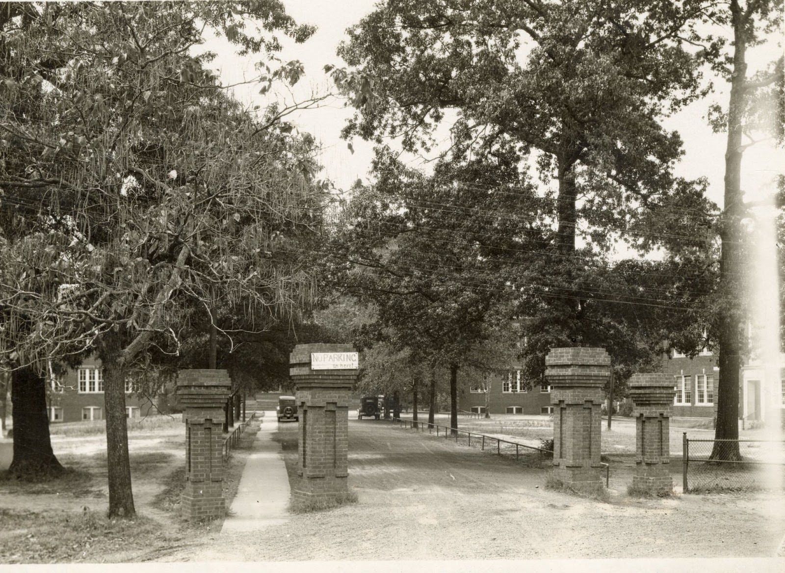 The original entrance to Louisiana Polytechnic Institute in front of the Main Building.