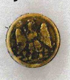 Made in Mexico or in England. Cast and subsequently die-stamped with small drilled shanks. Dating to the Iturbide period, these examples show the Mexican eagle device in a developmental stage of the design's evolution.