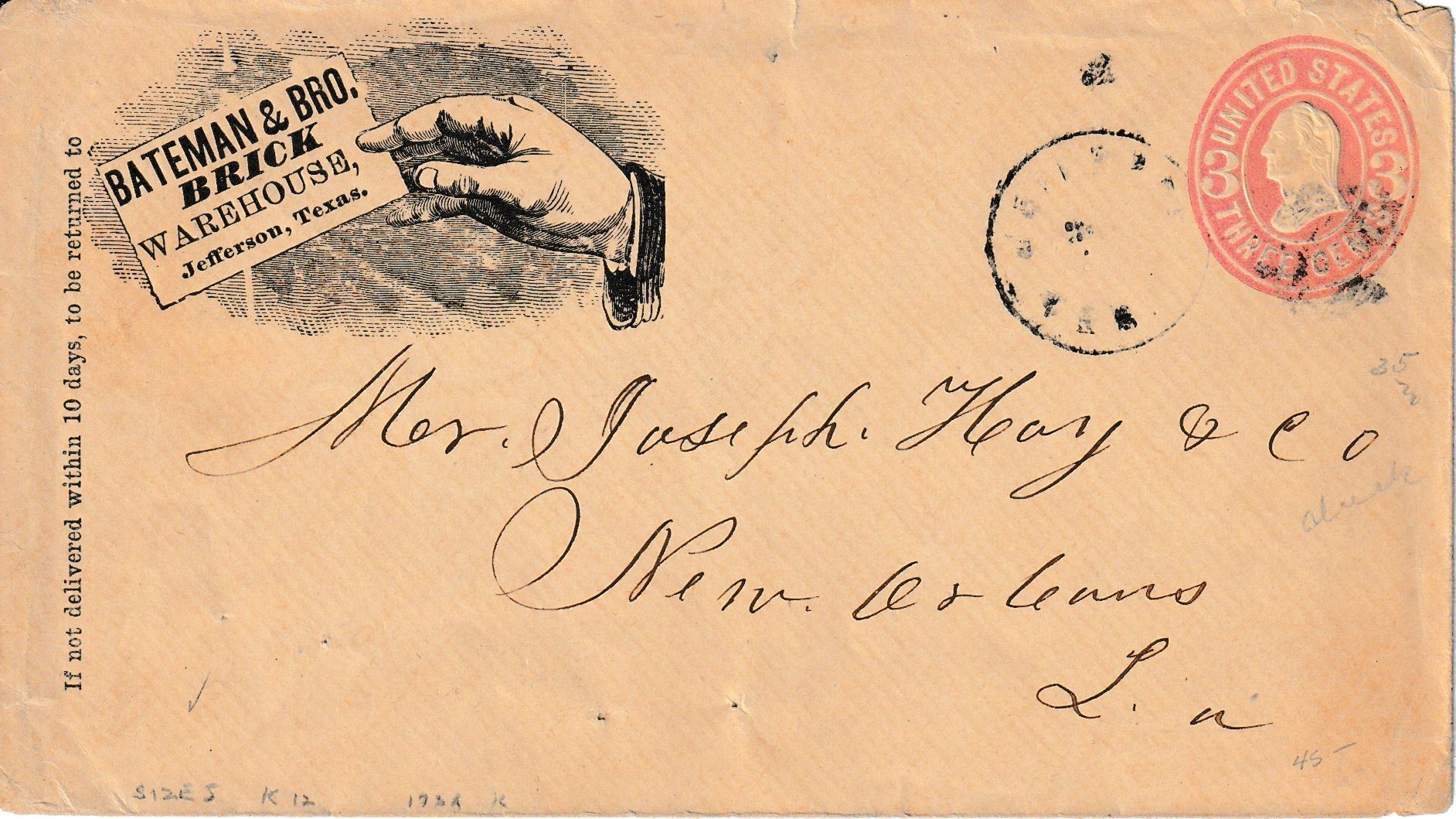 “BATEMAN & BRO. / BRICK / WAREHOUSE / Jefferson/ Texas” to “Mes. Joseph Hoy & Co / New Orleans / Louisiana.”Context
