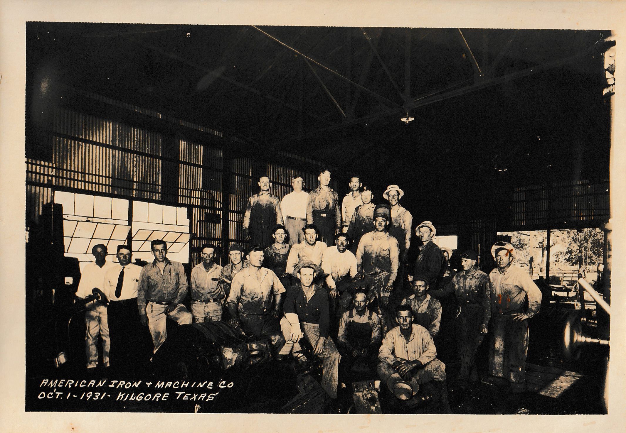 Photograph of workers at the "AMERICAN IRON & MACHINE CO / OCT 1, 1931 - KILGORE, TEXAS"Context