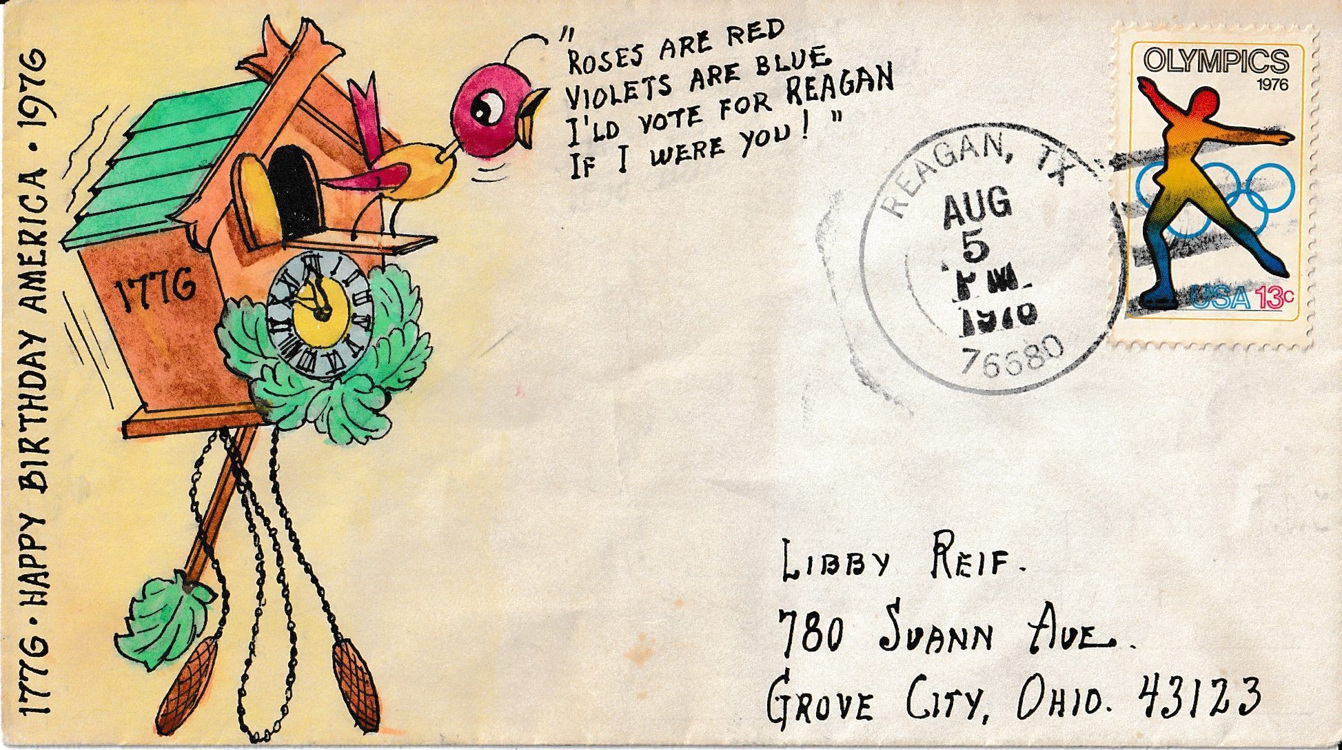 Postmarked on August 5, 1976 in Reagan, Texas.Context