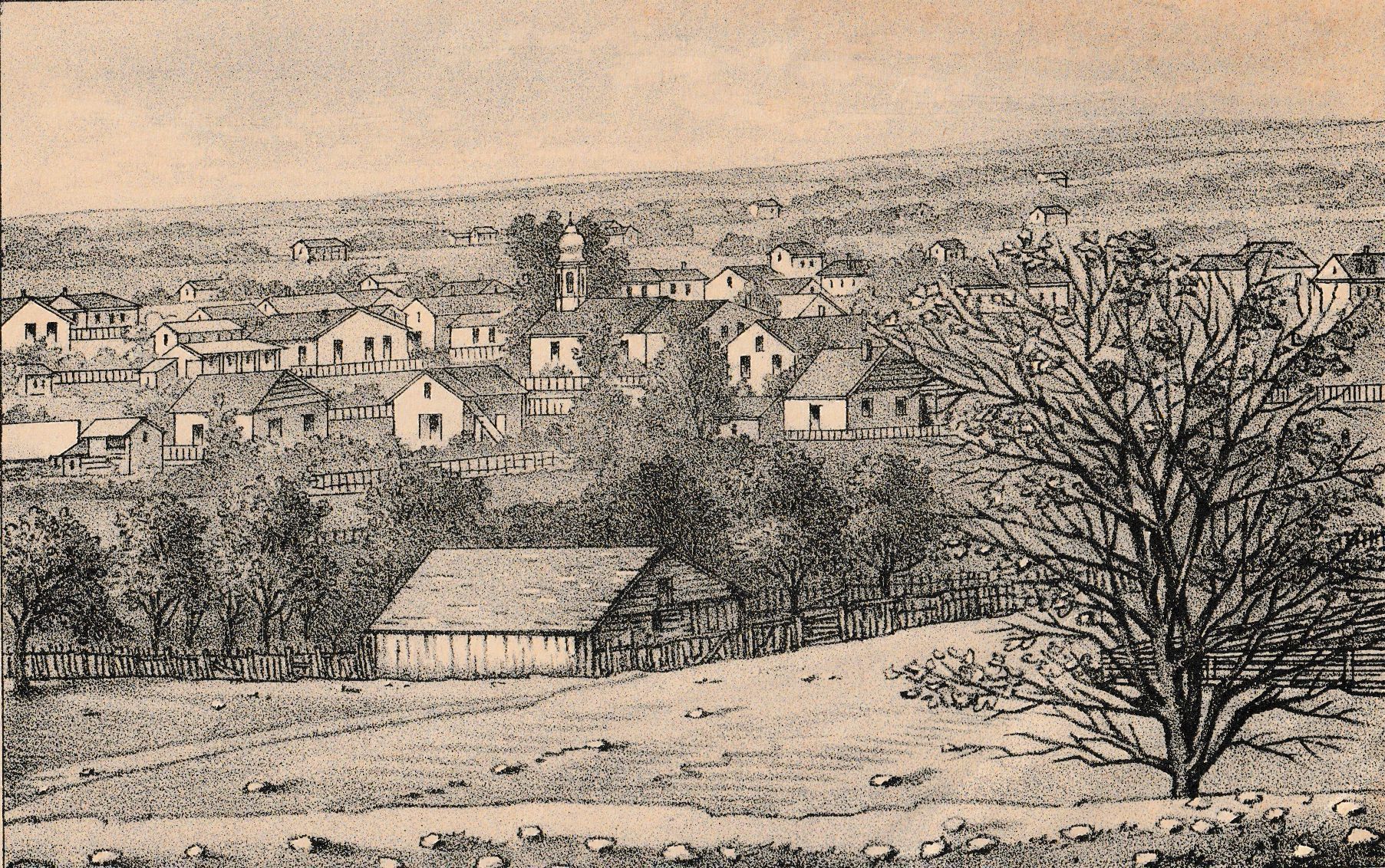 Lithograph of New Braunfels from the Galveston, Harrisburg & San Antonio Railway Company’s 1876 book “A Description of Western Texas” providing an extensively illustrated guide for prospective immigrants to western Texas.Context