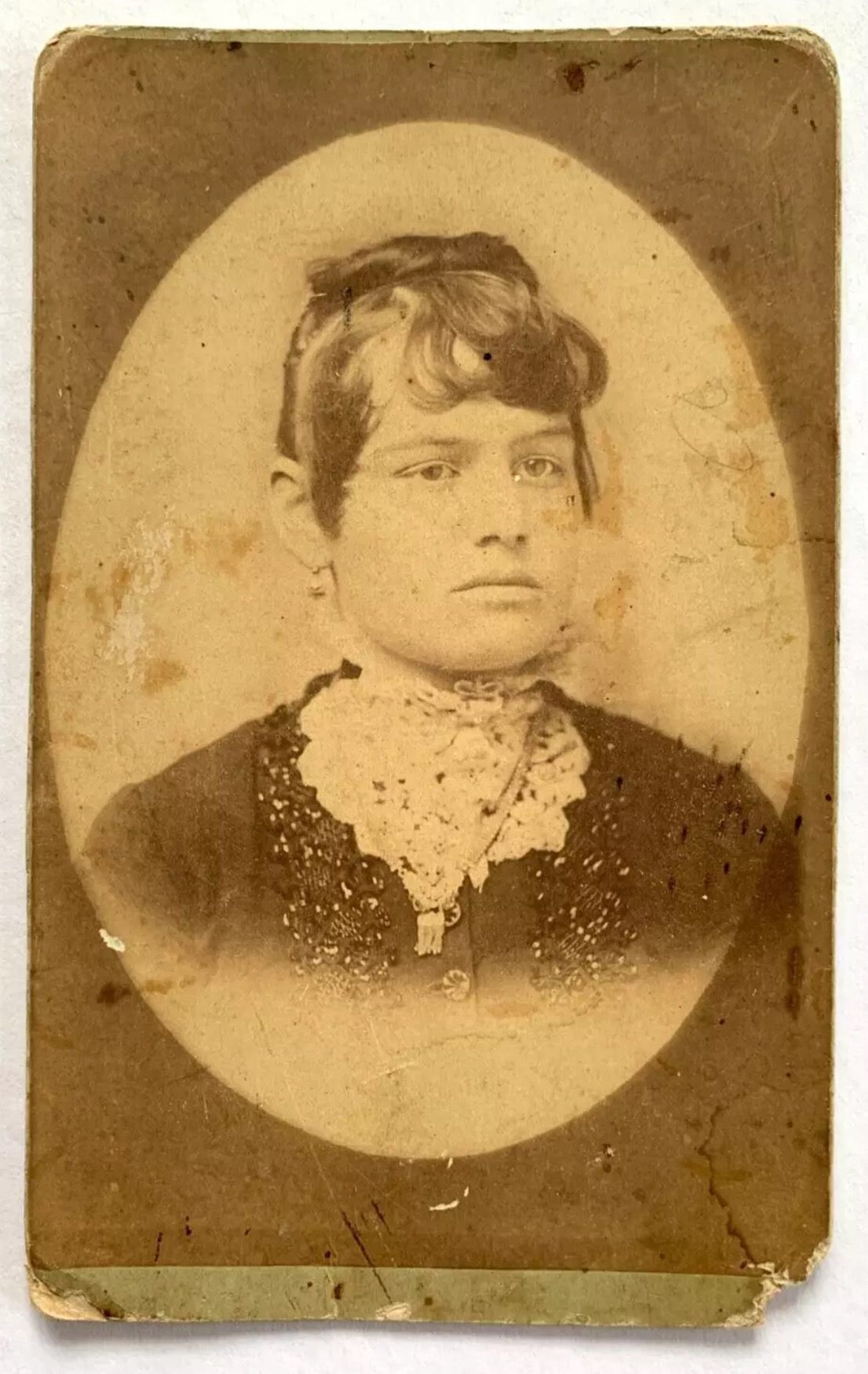 Circa 1888 cabinet card by N.F. Duff of Stephenville, Texas of daughter of Populist leader Thomas Lewis Nugent - Clara "Cassie" Emma Fentress Nugent Powers.Context