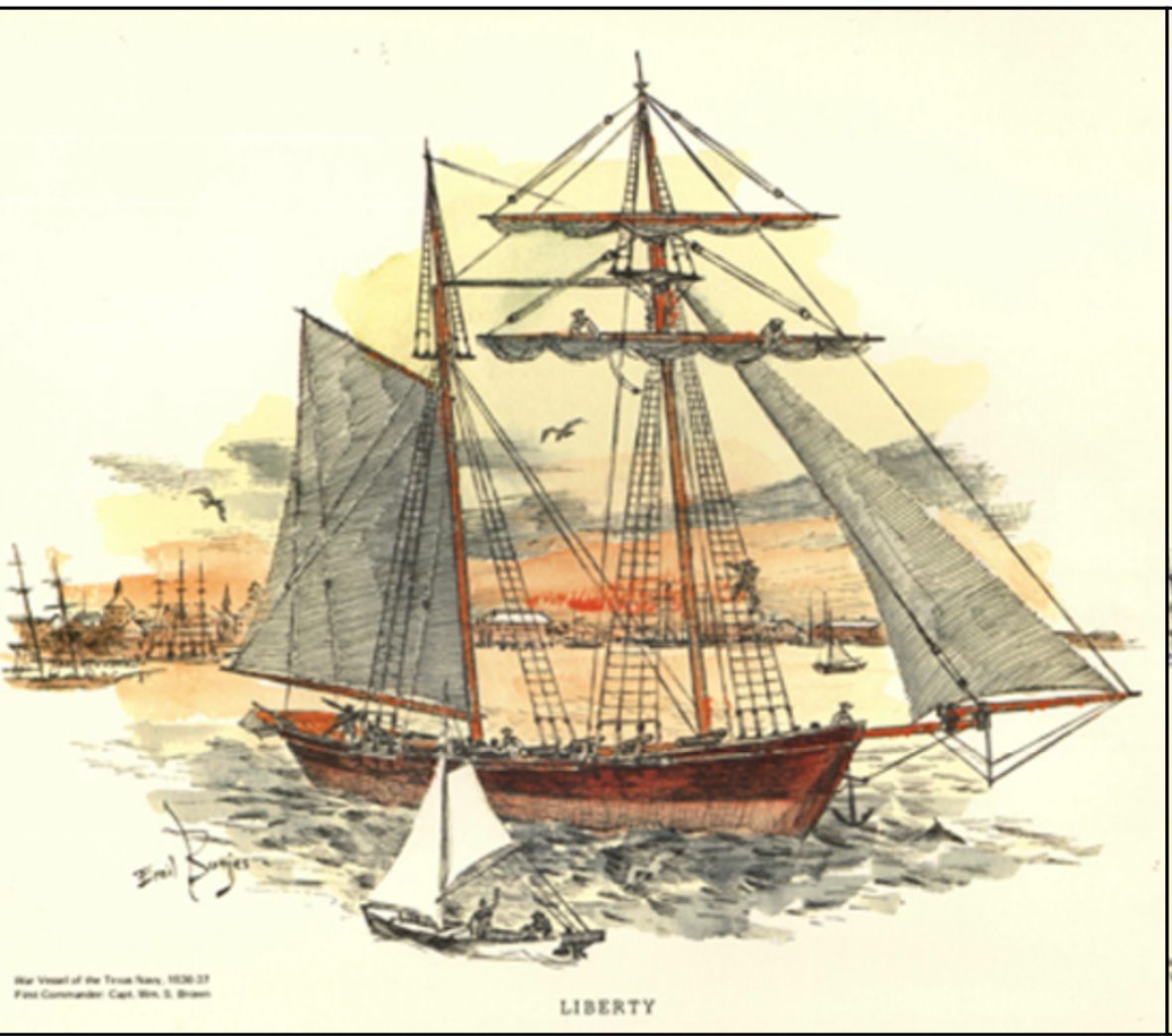 Texas Navy vessel 'LIBERTY', limited edition color print from a pen and ink sketch by notable Galveston artist Emil Bunjes (1902-1974).Context