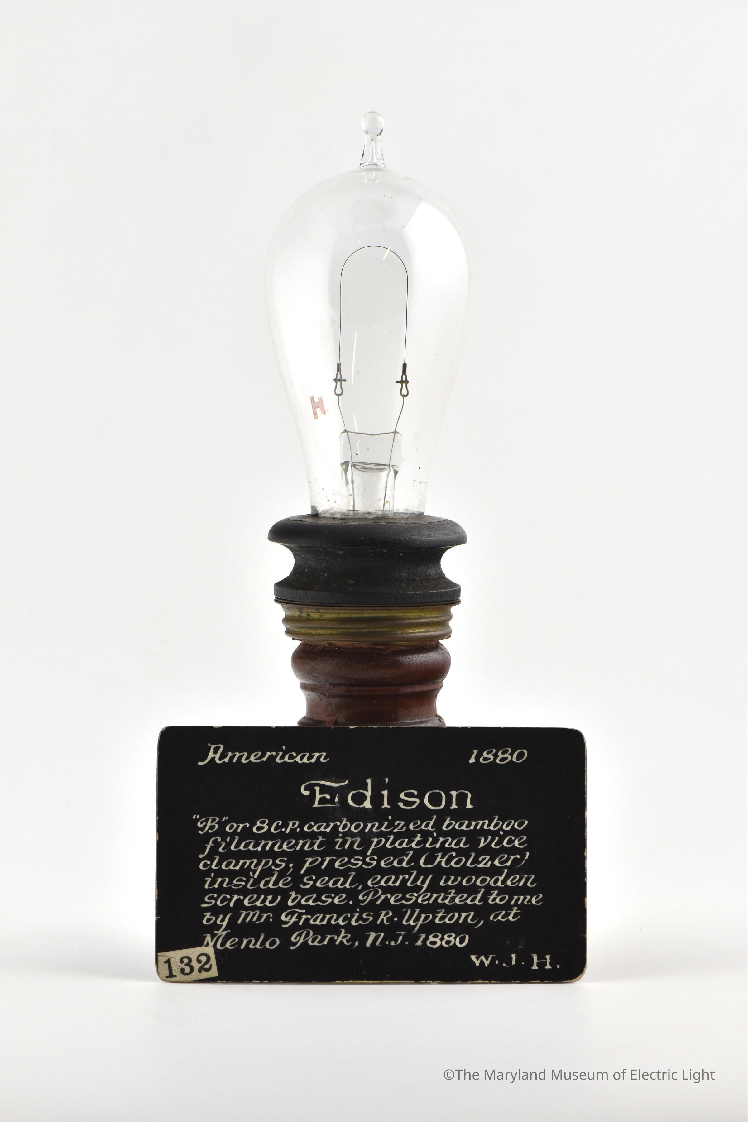 Late 1880 first form of Edison lamp with screw base. Provenance: the William J Hammer collection.Made/Created