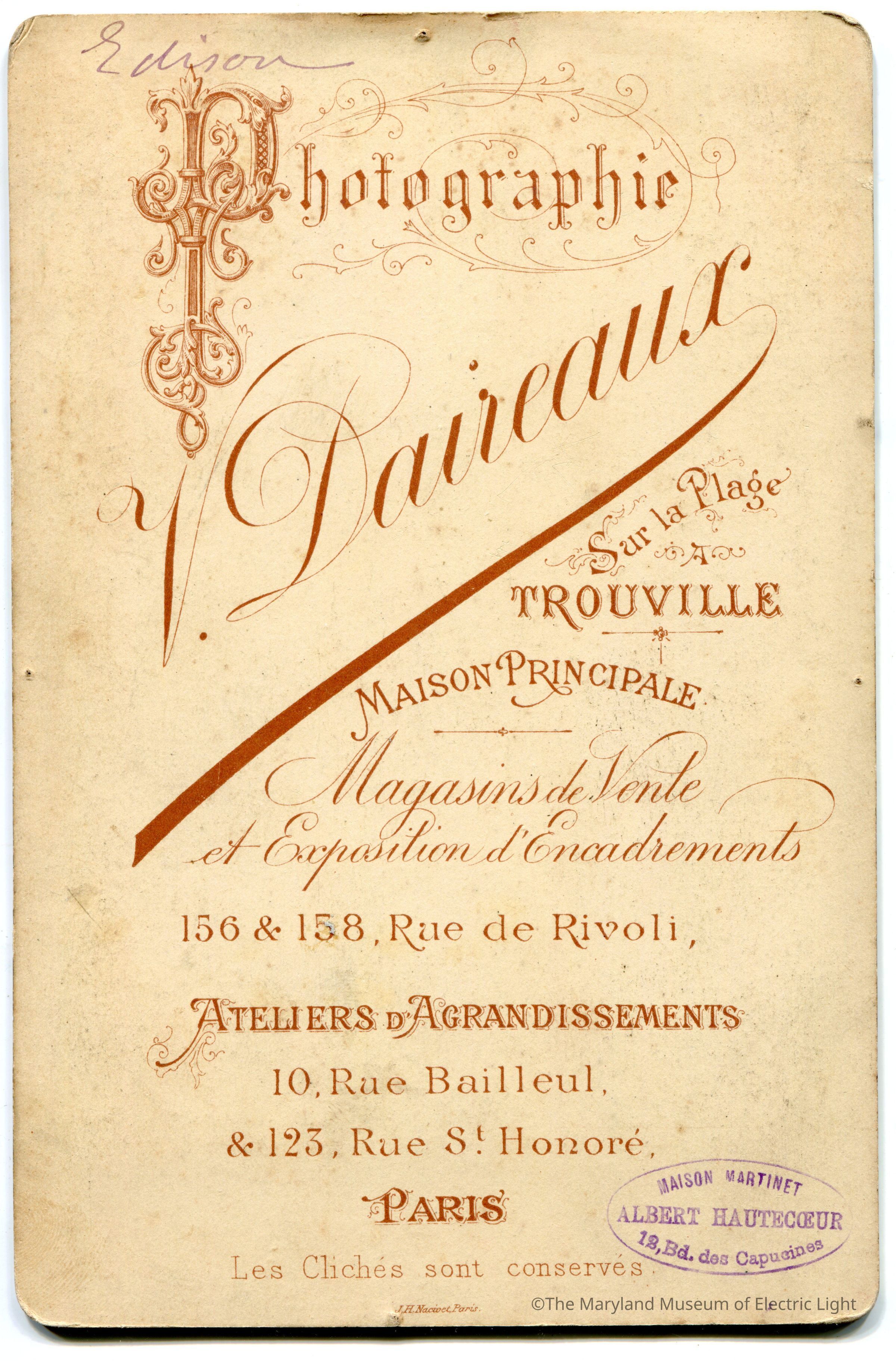 1889 Paris Exhibition Thomas Edison Cabinet Card #2