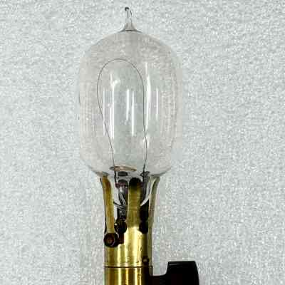 Early 1st generation Thomson Houston lamp with "hook-eye" attachment method. (note: lamp holder accession number xxx)Made/Created