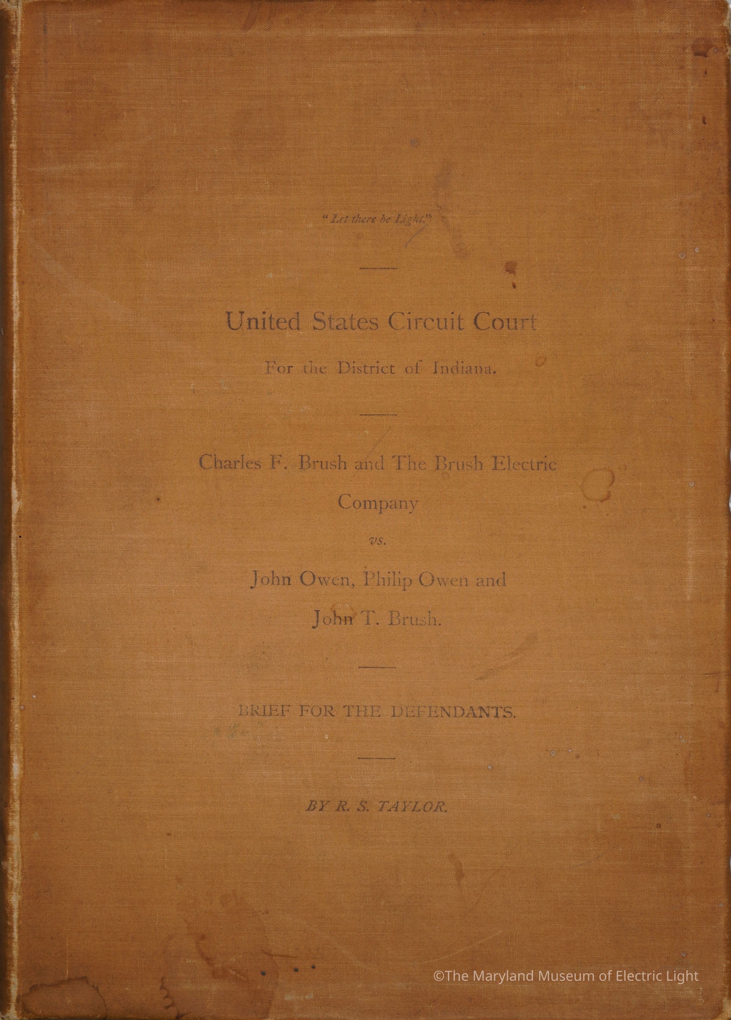 Charles F Brush and The Brush Electric Company vs. John Owen, Philip Owen, and John T Brush