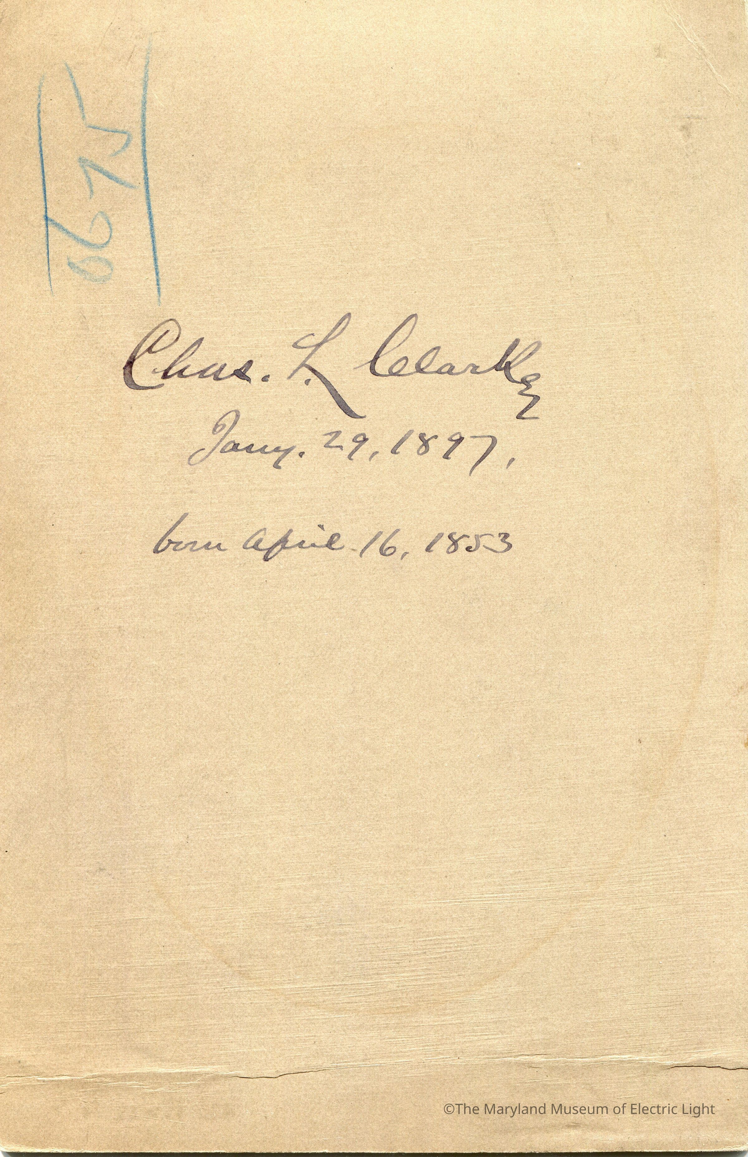 Charles Lorenzo Clarke Cabinet Card 1897Inscription/Signature/Marks