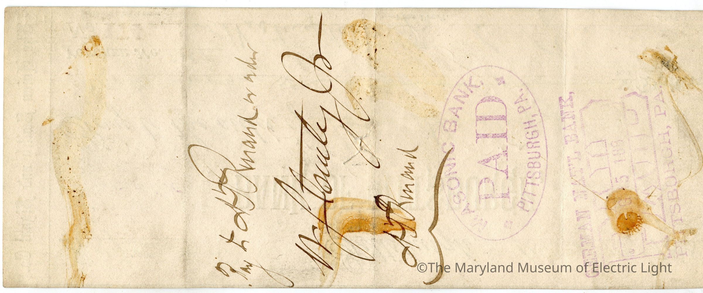 Check written by George Westinghouse Jr. to William Stanley