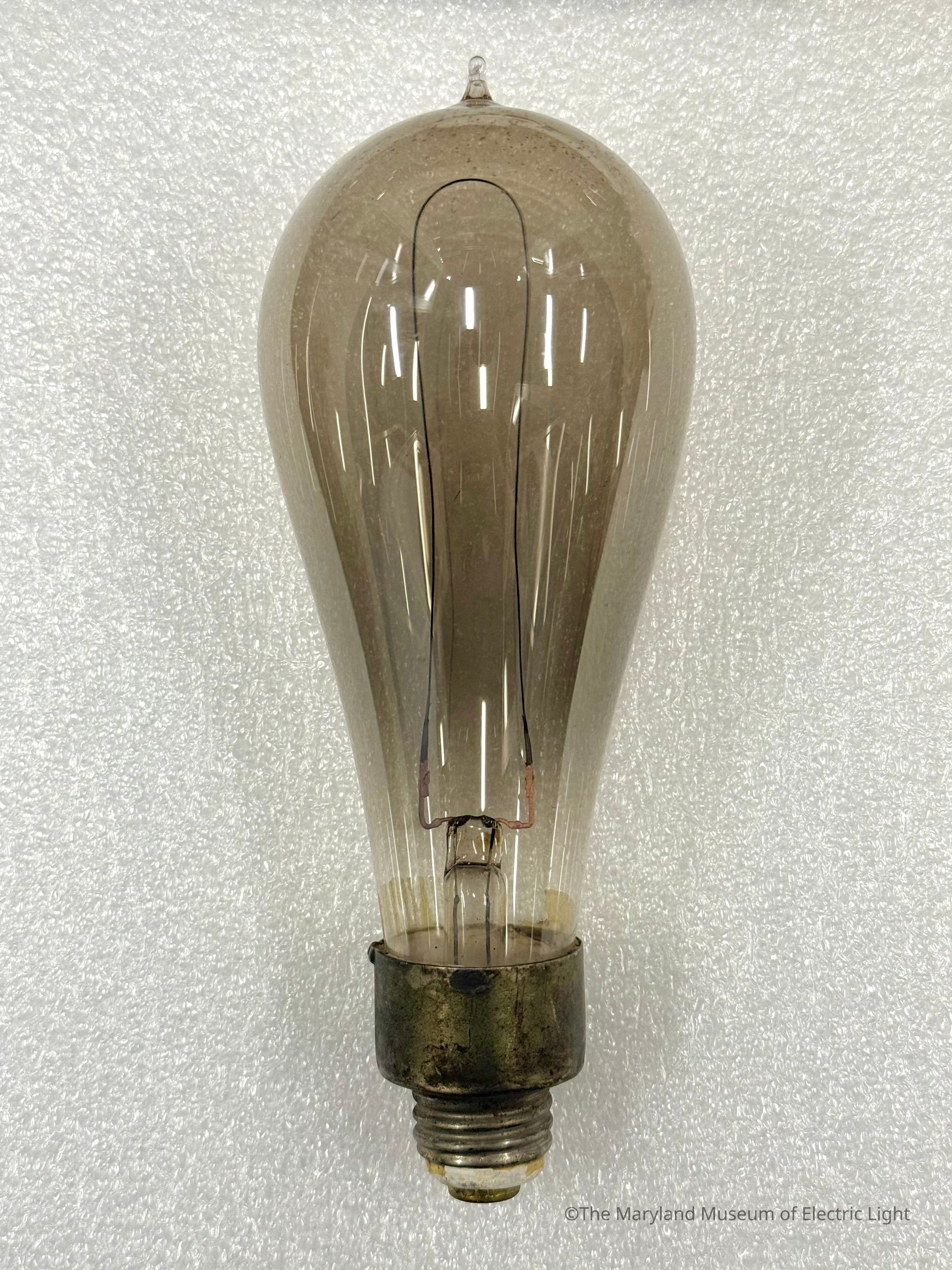 Edison incandescent lamp of the period of about 1883-1884. Carbonized bamboo filament attached with the copper plating method, as developed by Edison in 1881. 50 candlepower size lamp. Nickel-plated base, as is often seen with larger capacity Edison lamps.Made/Created