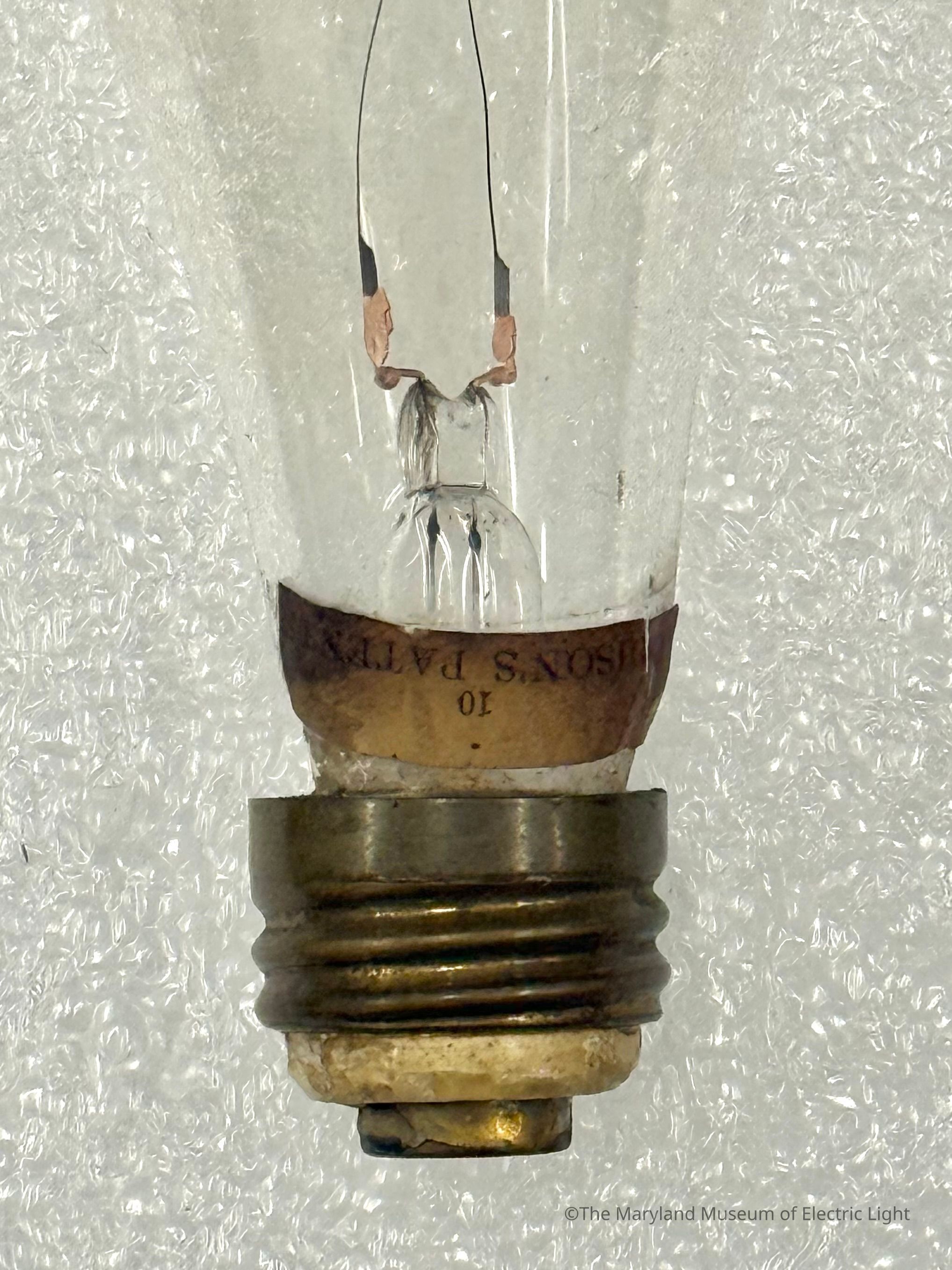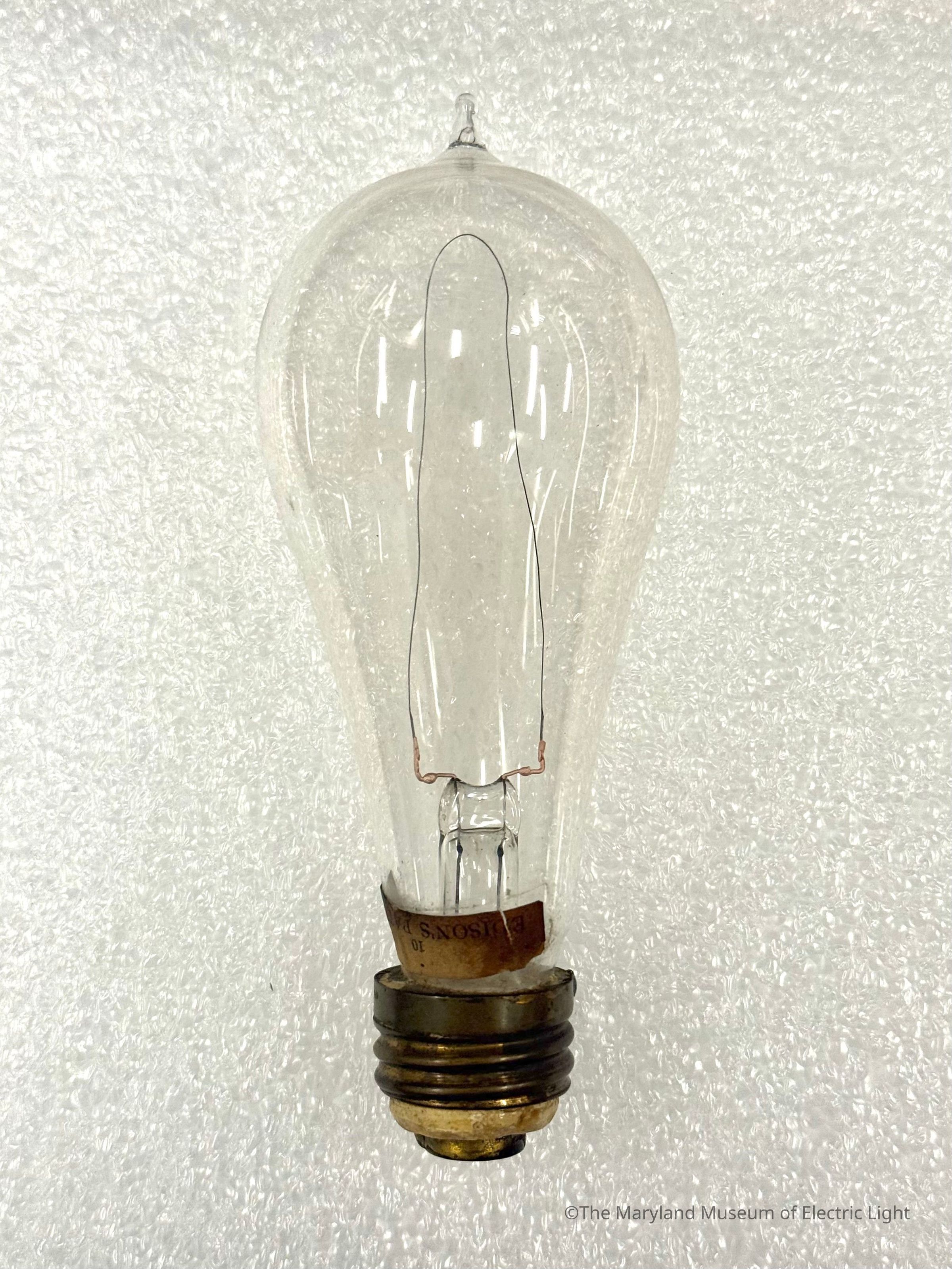 Edison incandescent lamp of the period of about 1884-1885. Carbonized bamboo filament attached with the copper plating method, as developed by Edison in 1881. 10 candlepower lamp.Made/Created