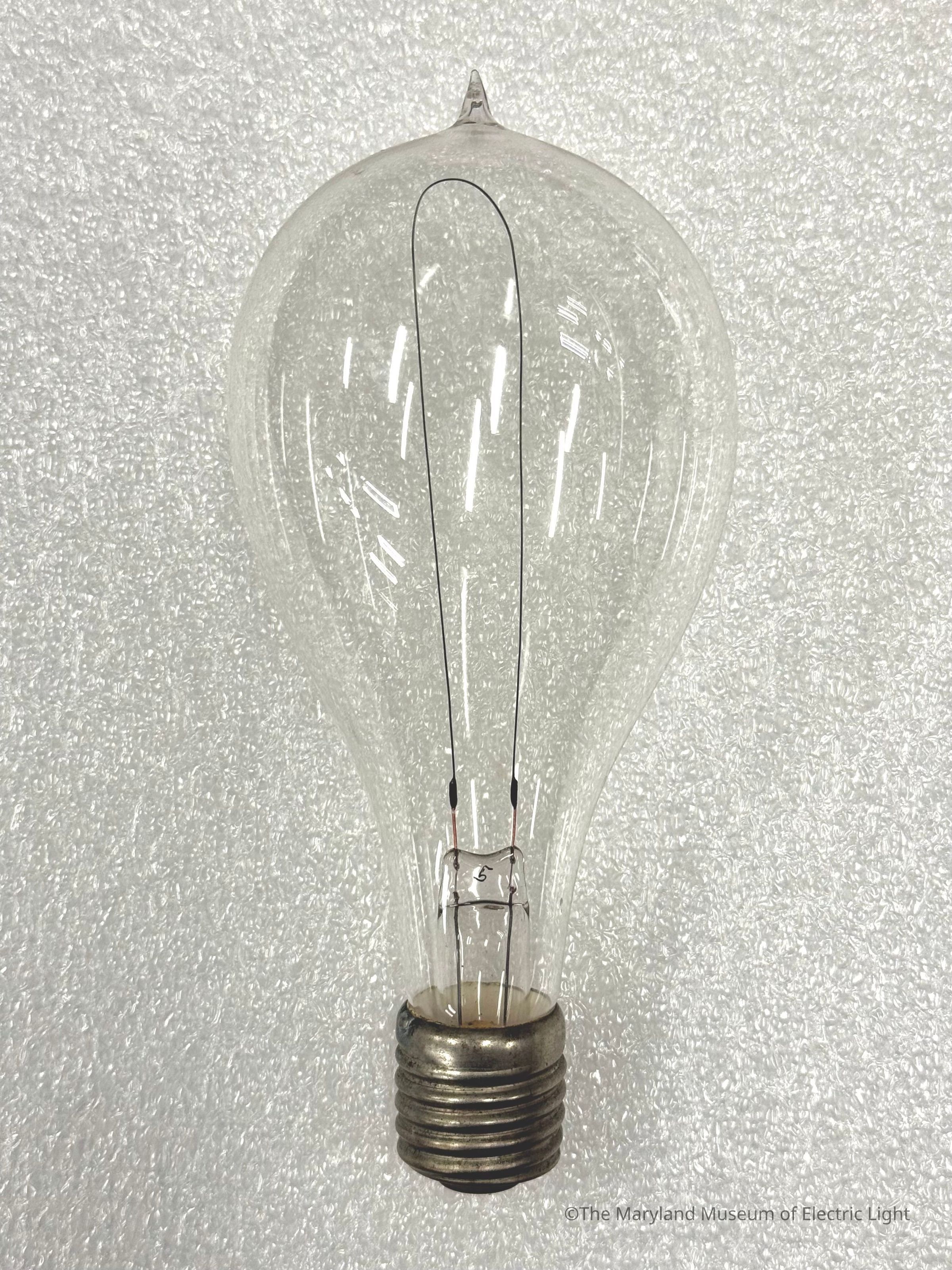 Edison lamp circa 1890. Larger size, likely 32 candlepower. Carbonized bamboo filament. Brass base with nickel plating, typically found on larger than 16 candlepower sizes.Made/Created