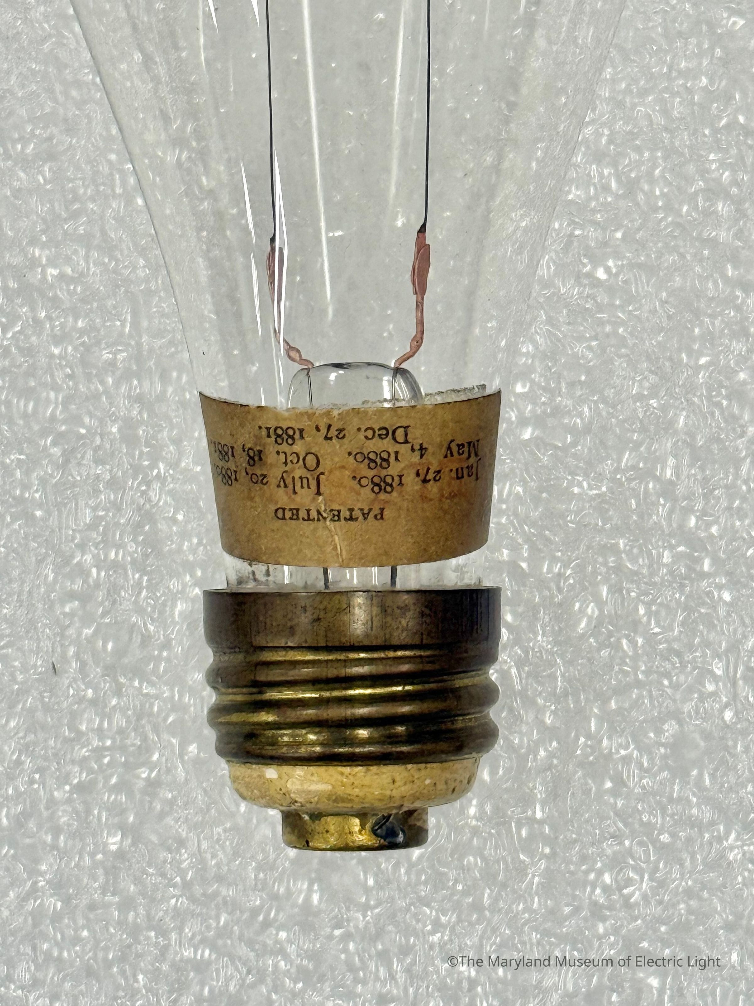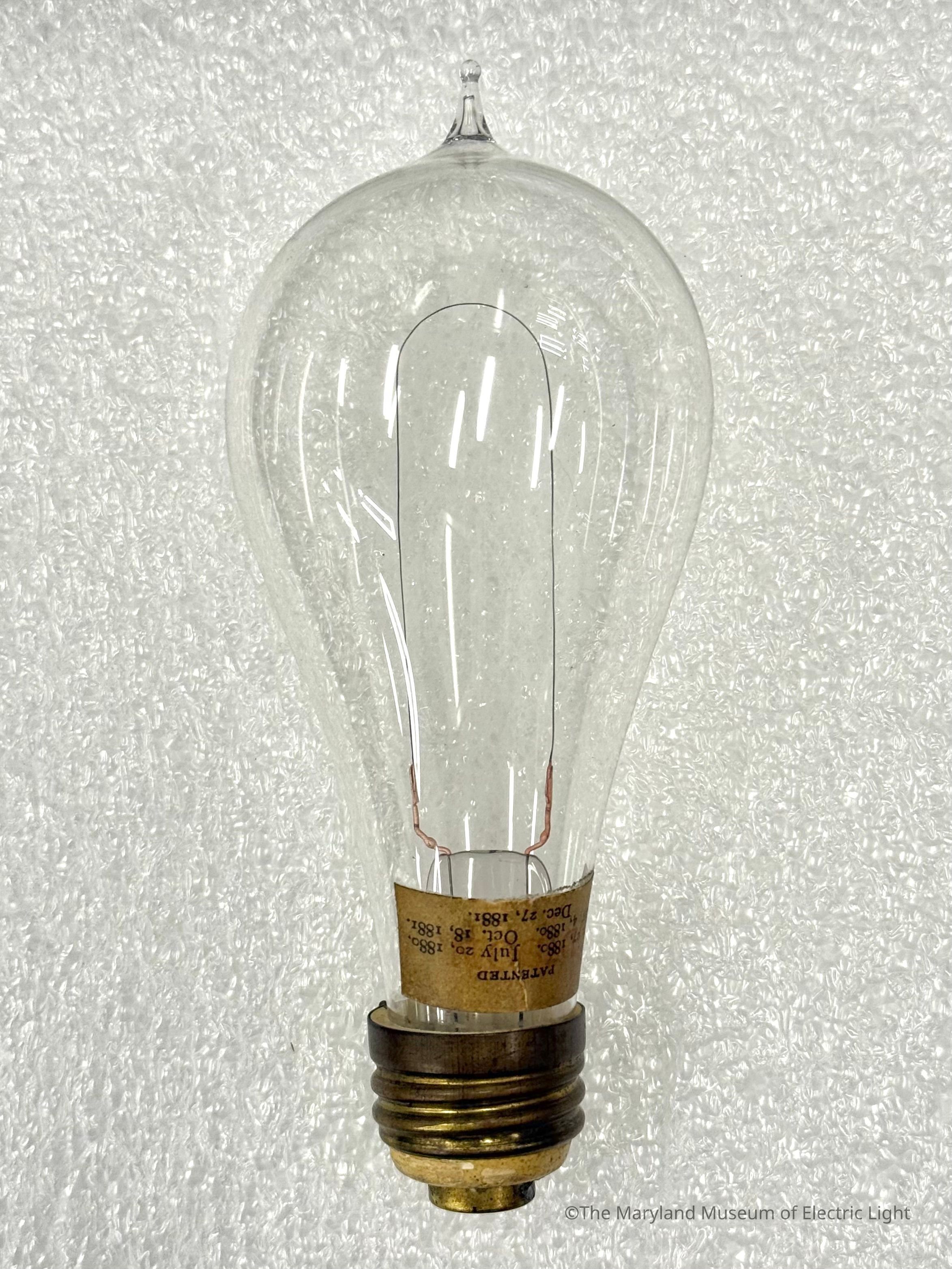Edison incandescent lamp of the period of about 1883-1884. Carbonized bamboo filament attached with the copper plating method, as developed by Edison in 1881. 16 candlepower lamp.Made/Created