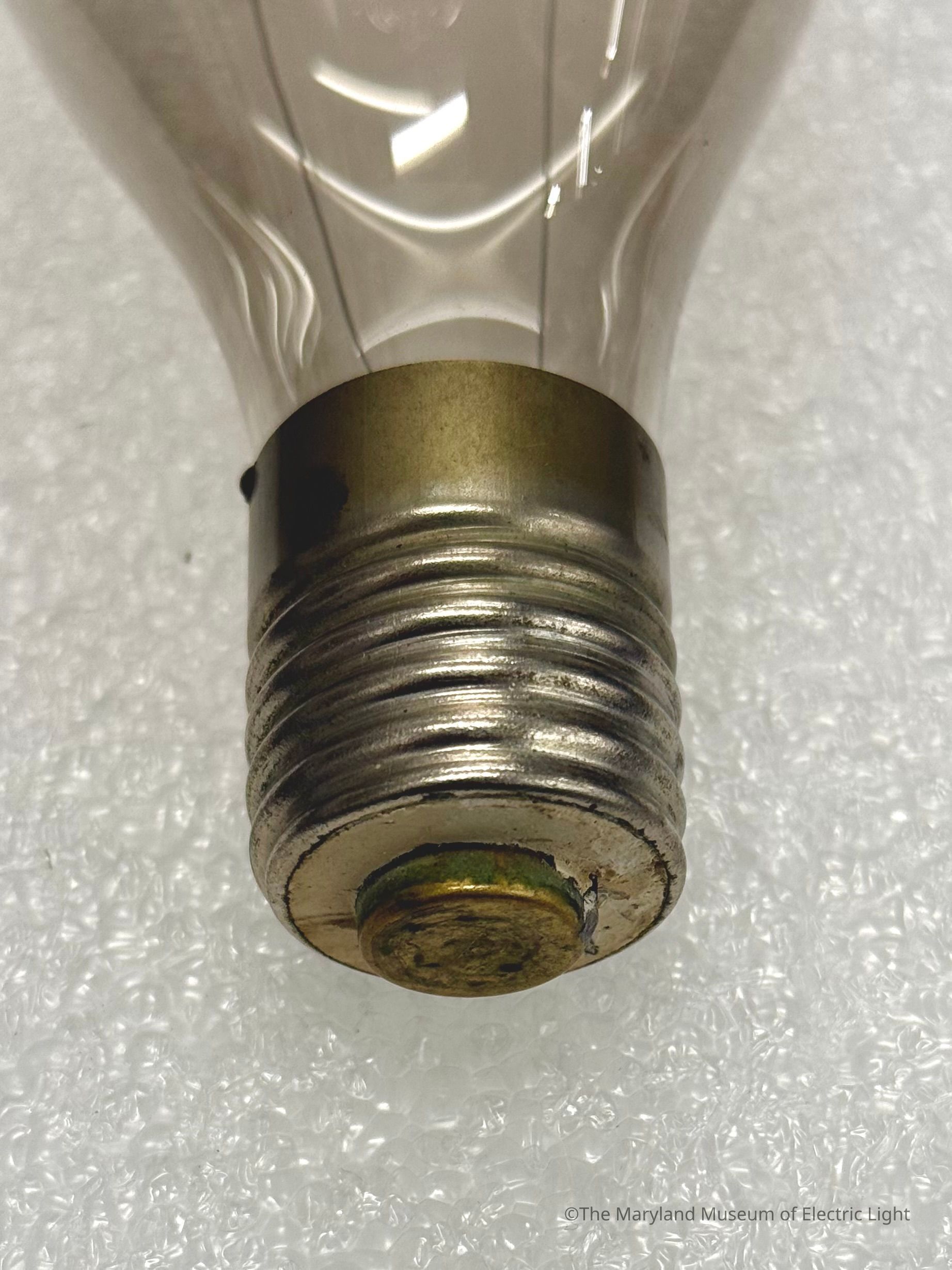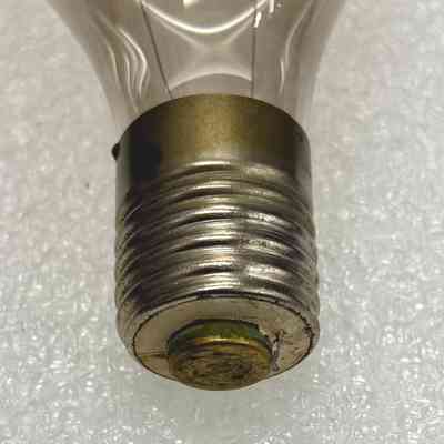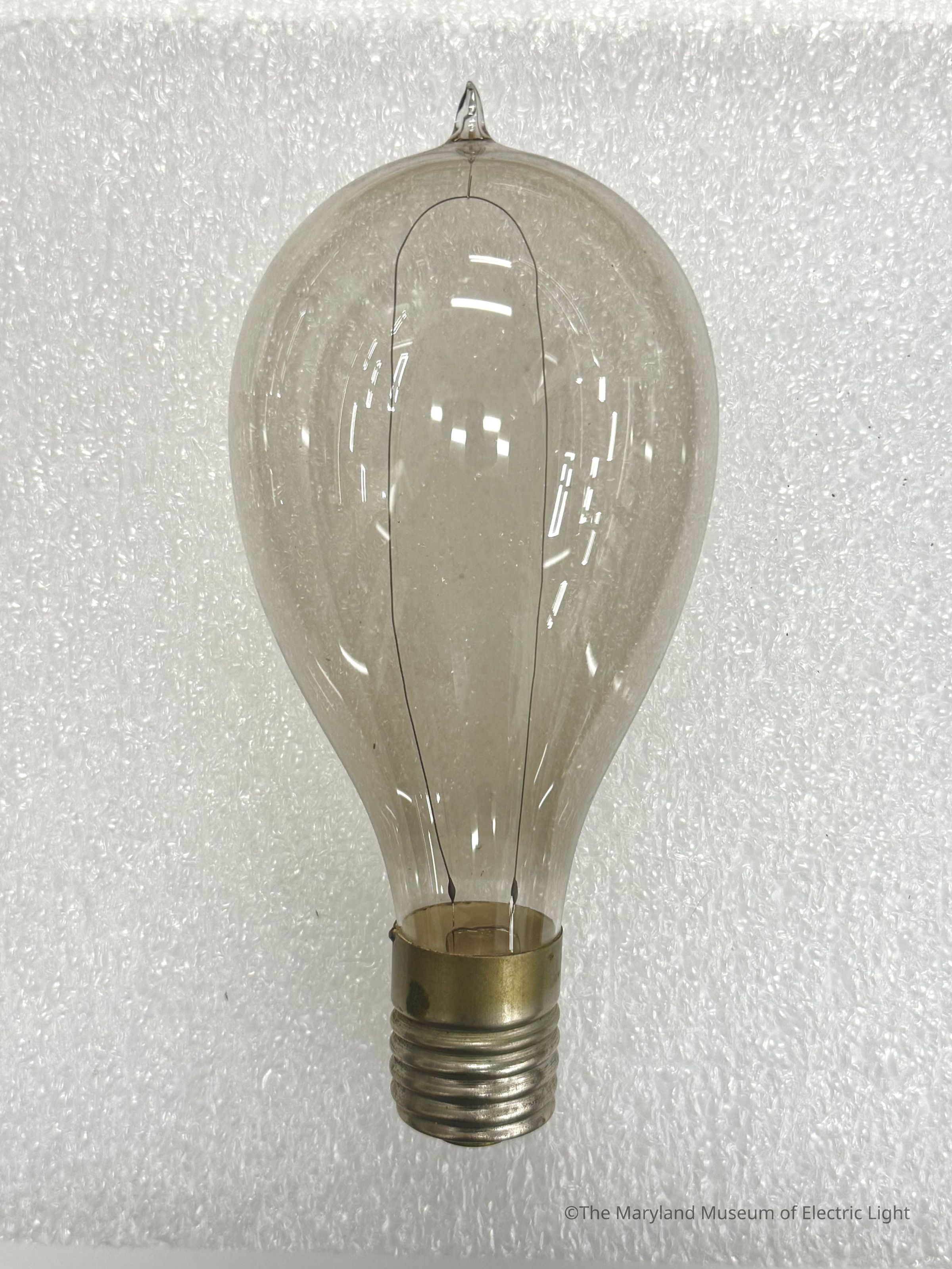 Edison incandewcent lamp of the latter 1880's-early 1890's. Larger output size of 32-50 candlepower. Nickel plated brass base as is typical of larger output Edison lamps. Platinum support hook at the crown of the envelope to support the filament, typicalty for vibration prone enviroments.Made/Created
