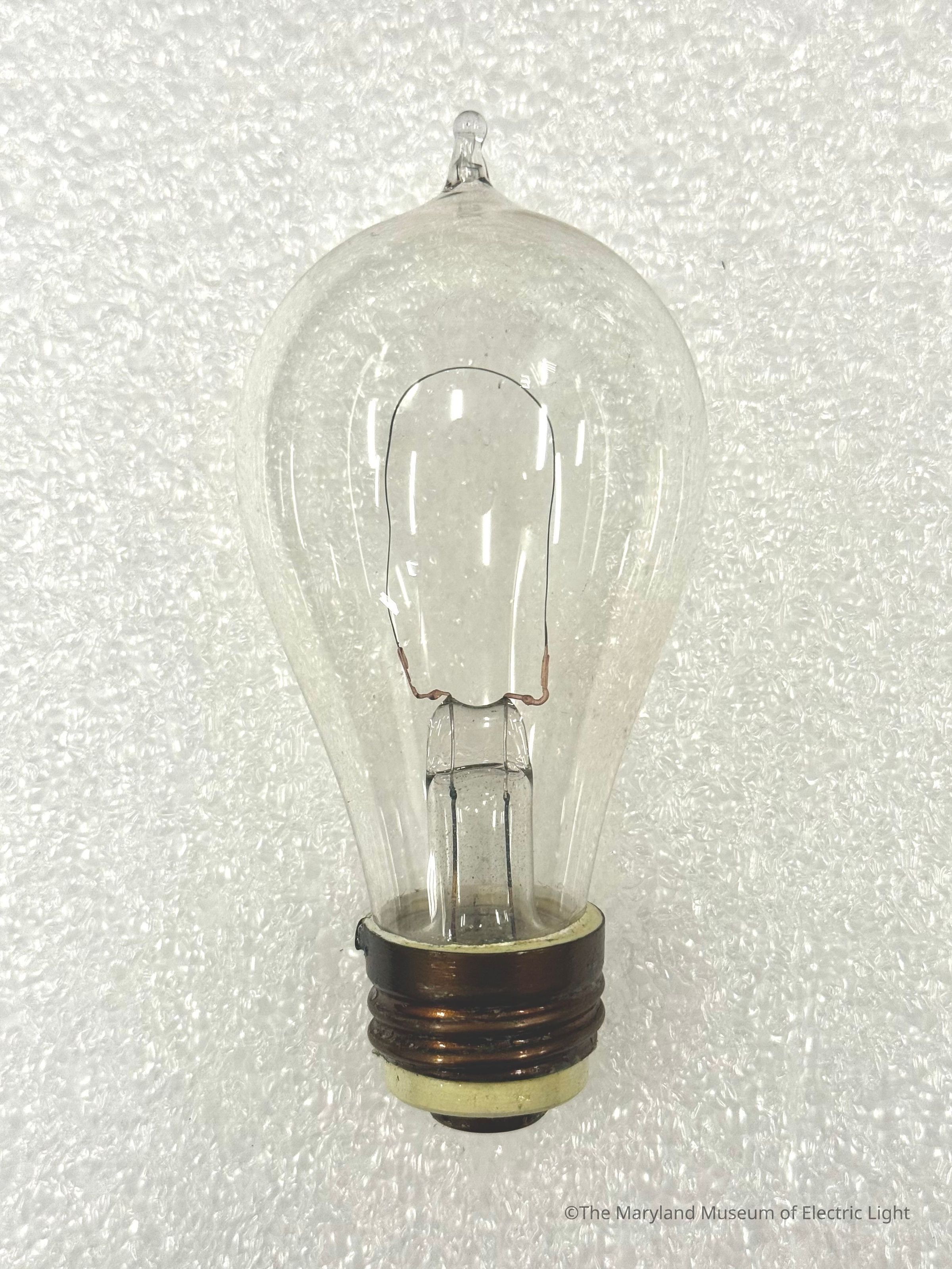 Edison incandescent lamp of the period of about 1883-1884. Carbonized bamboo filament attached with the copper plating method, as developed by Edison in 1881. 8 candlepower lamp.Made/Created