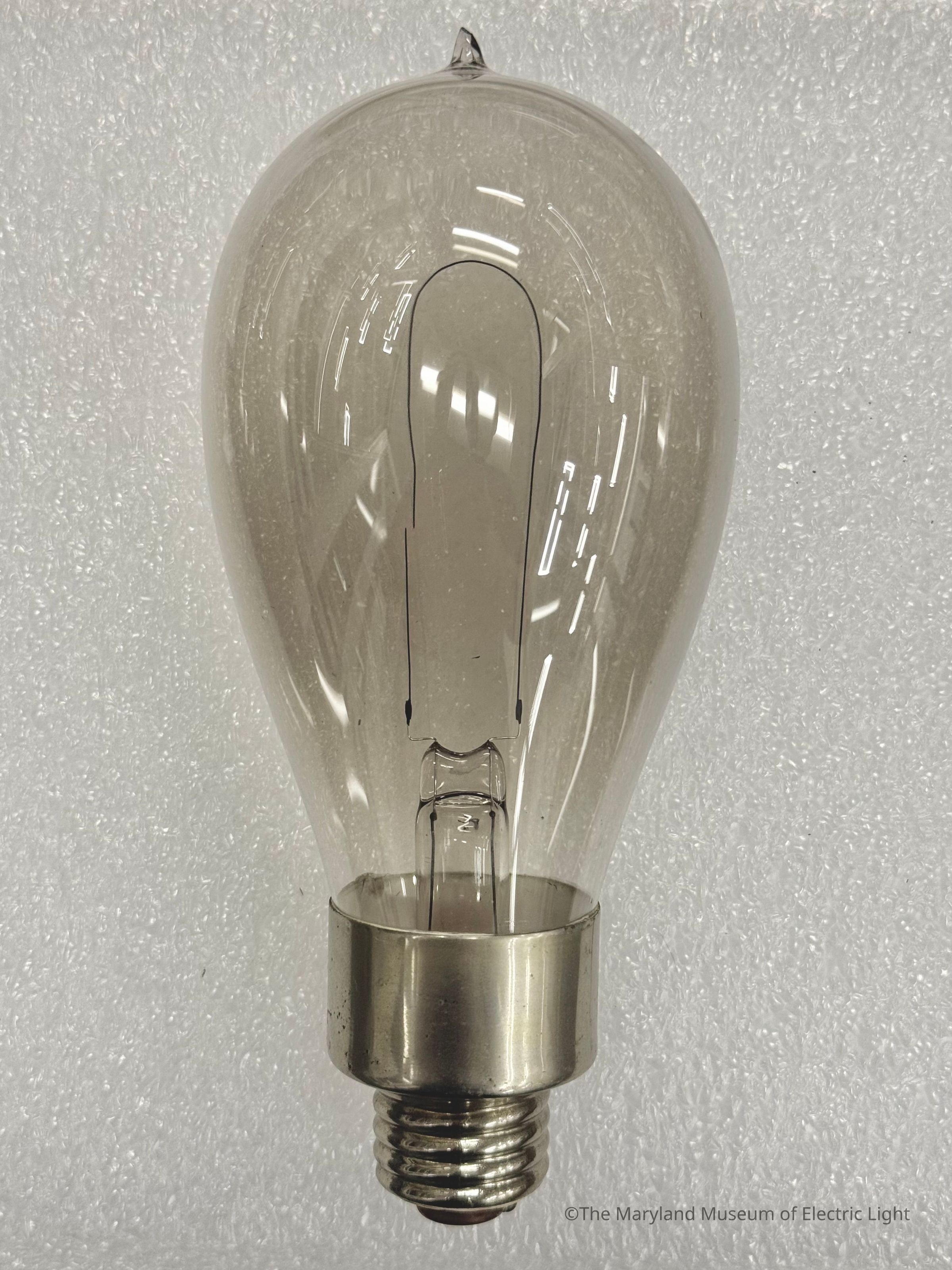 Edison lamp of about 1886-1887 wiyh full platoinum "goal post" lead in wires. Higher candlepower lamp of aproximately 32 candlepower.Made/Created