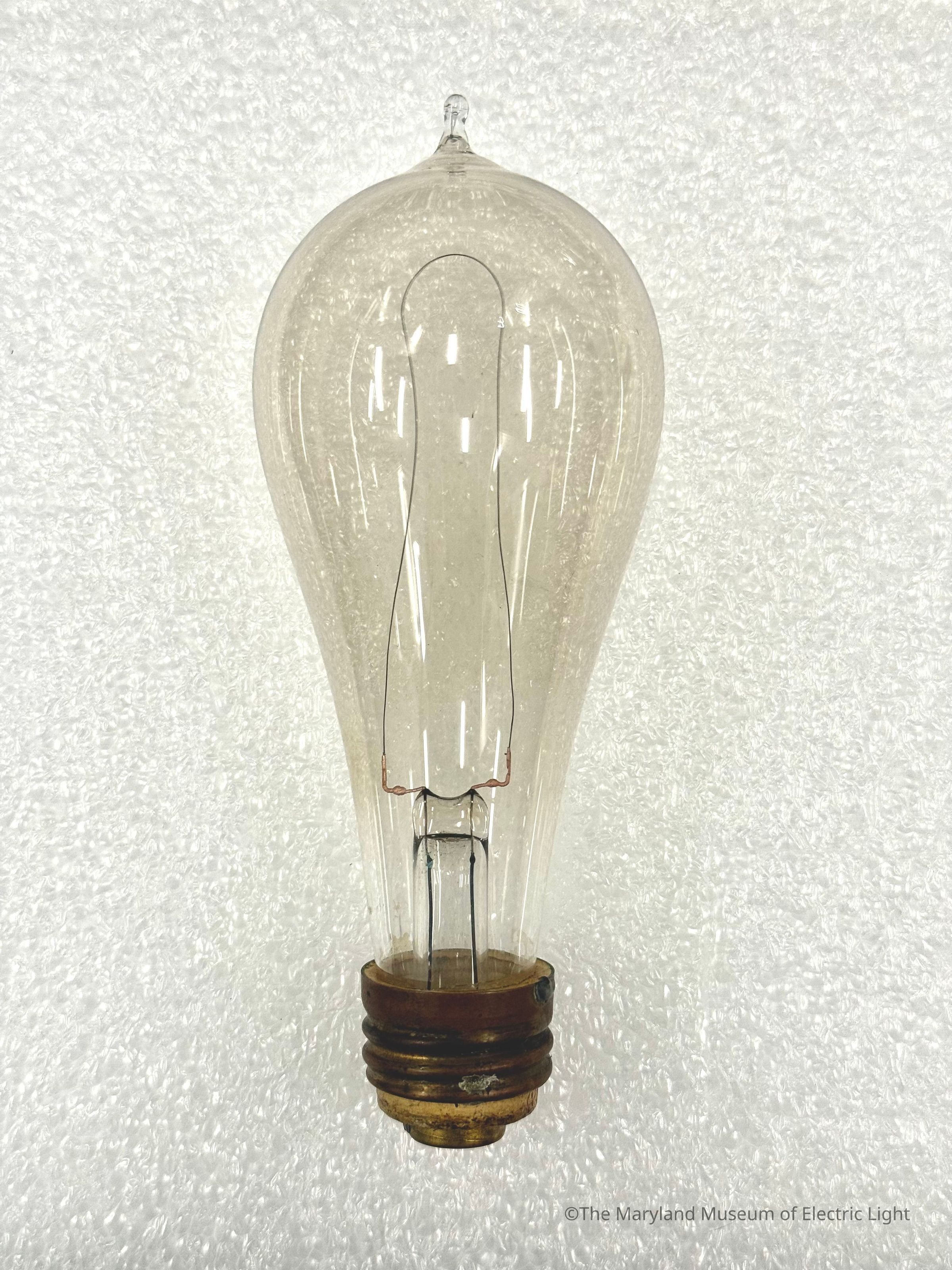 Edison incandescent lamp of the period of about 1883-1884. Carbonized bamboo filament attached with the copper plating method, as developed by Edison in 1881. 10 or 16CP sized lamp.Made/Created