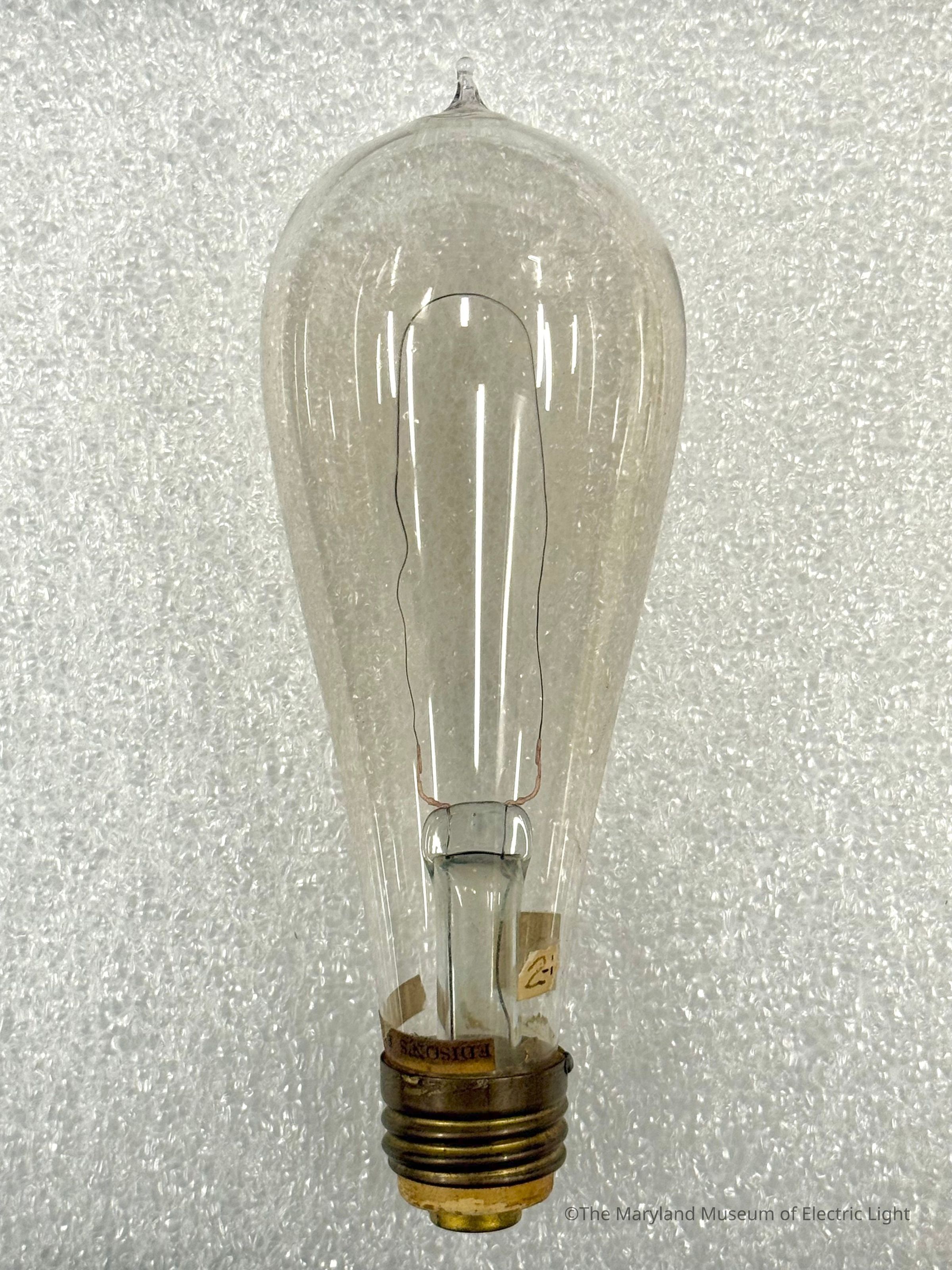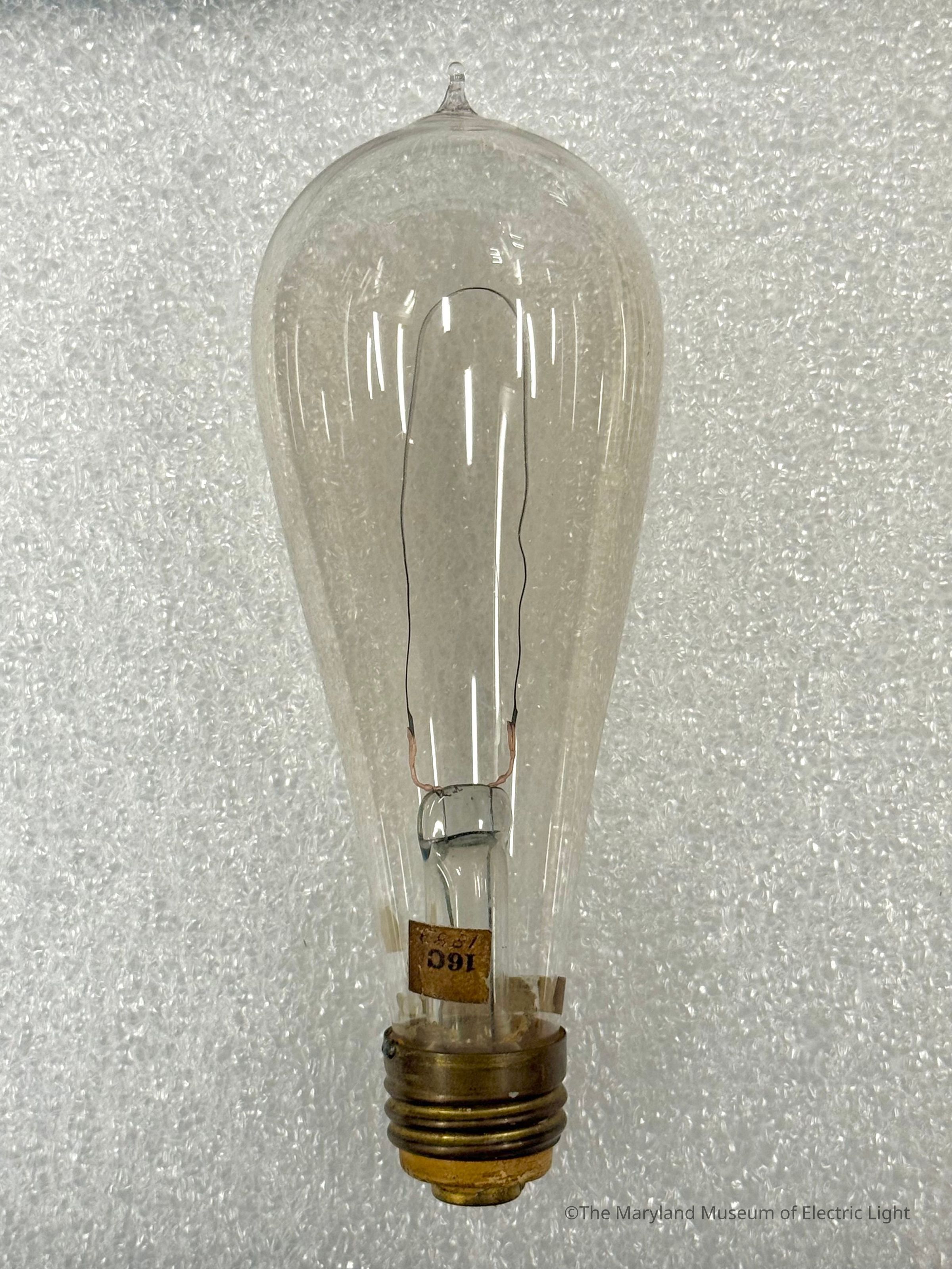 Edison incandescent lamp of the period of about 1883. Carbonized bamboo filament attached with copper plating method as developed by Edison in 1881. 16 candlepower lamp, with seperate "16C" label opposite of "Edison's Patents" labelMade/Created