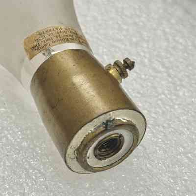 Edison "Night Lamp" with two brightness settings. Intensity level is adjusted by turning the threaded thumb screw from one endpoint to the other, lighting 1/2 or the entire "hairpin" style filament. The New Type Edison lamp was produced during the General Electric period of Edison lamp production. All Edison "Night Lamp" envelopes were frosted.Made/Created