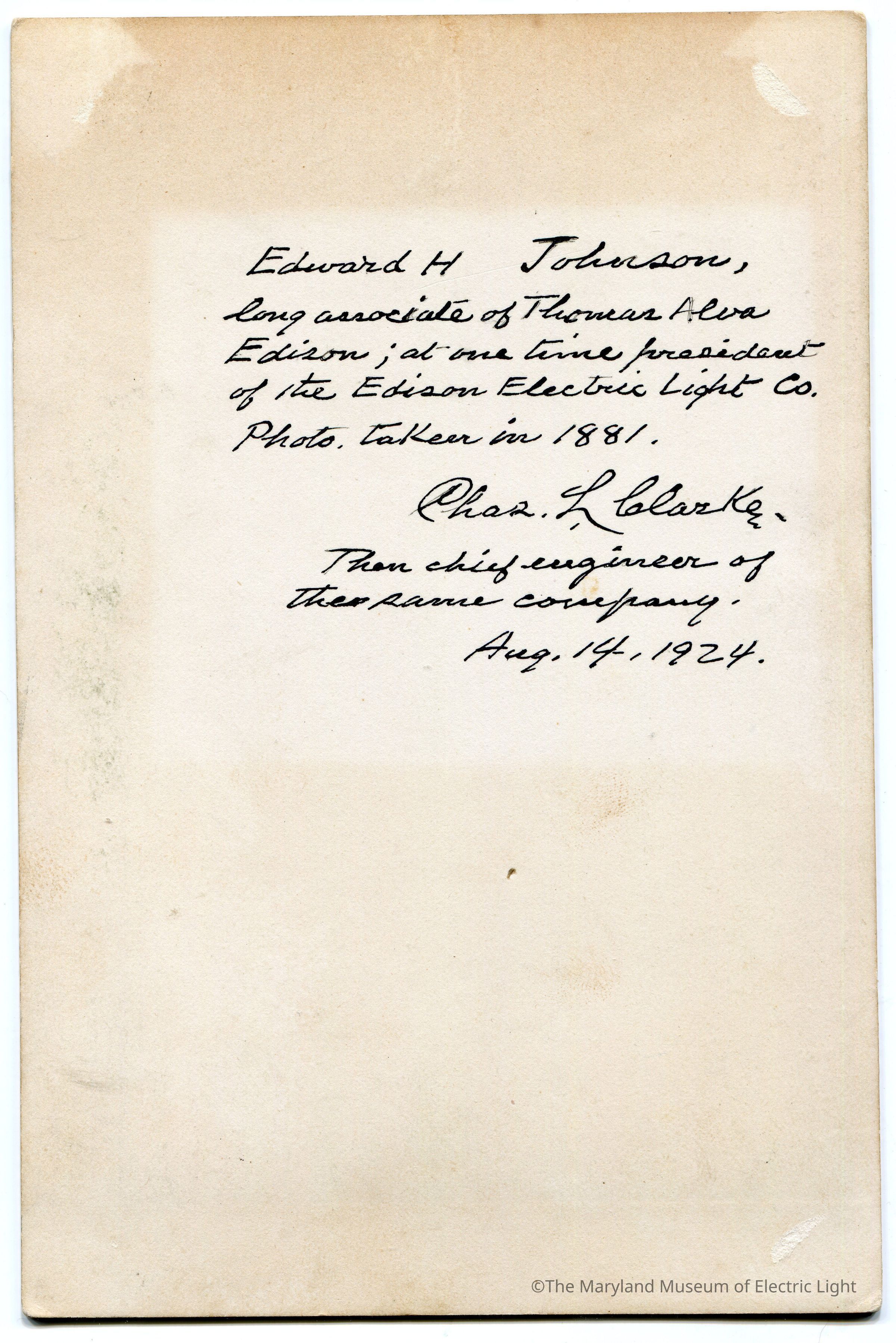 Edward Hibberd Johnson Cabinet CardEntry/Object ID