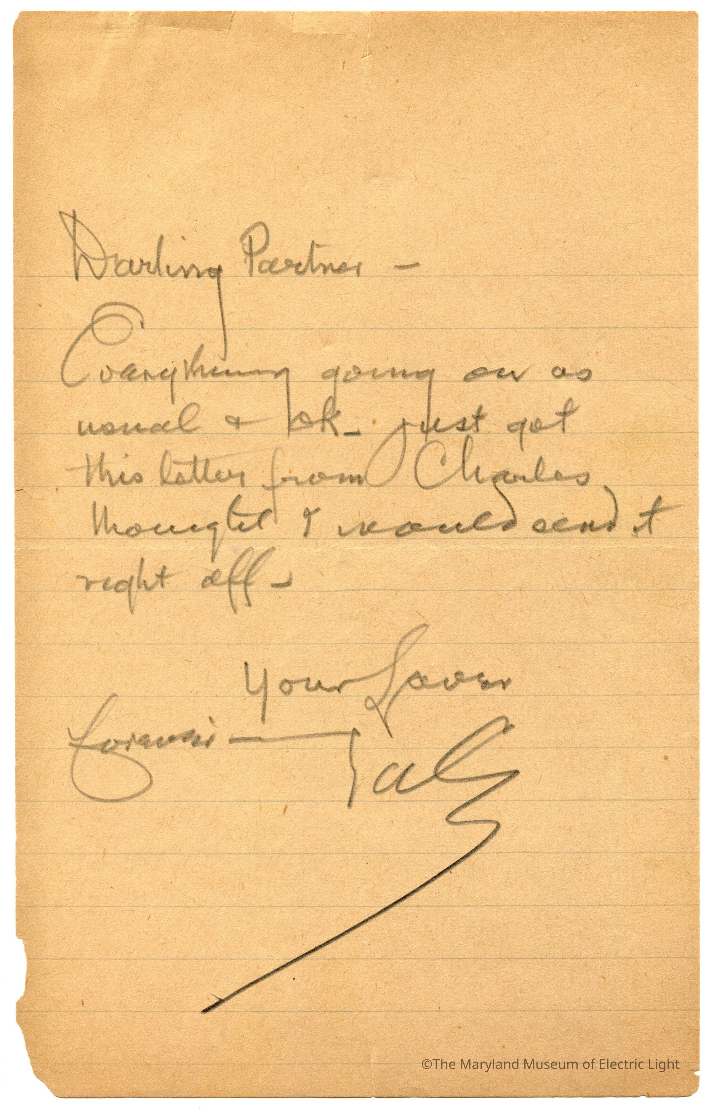 Letter - T A Edison to Mina Miller Edison