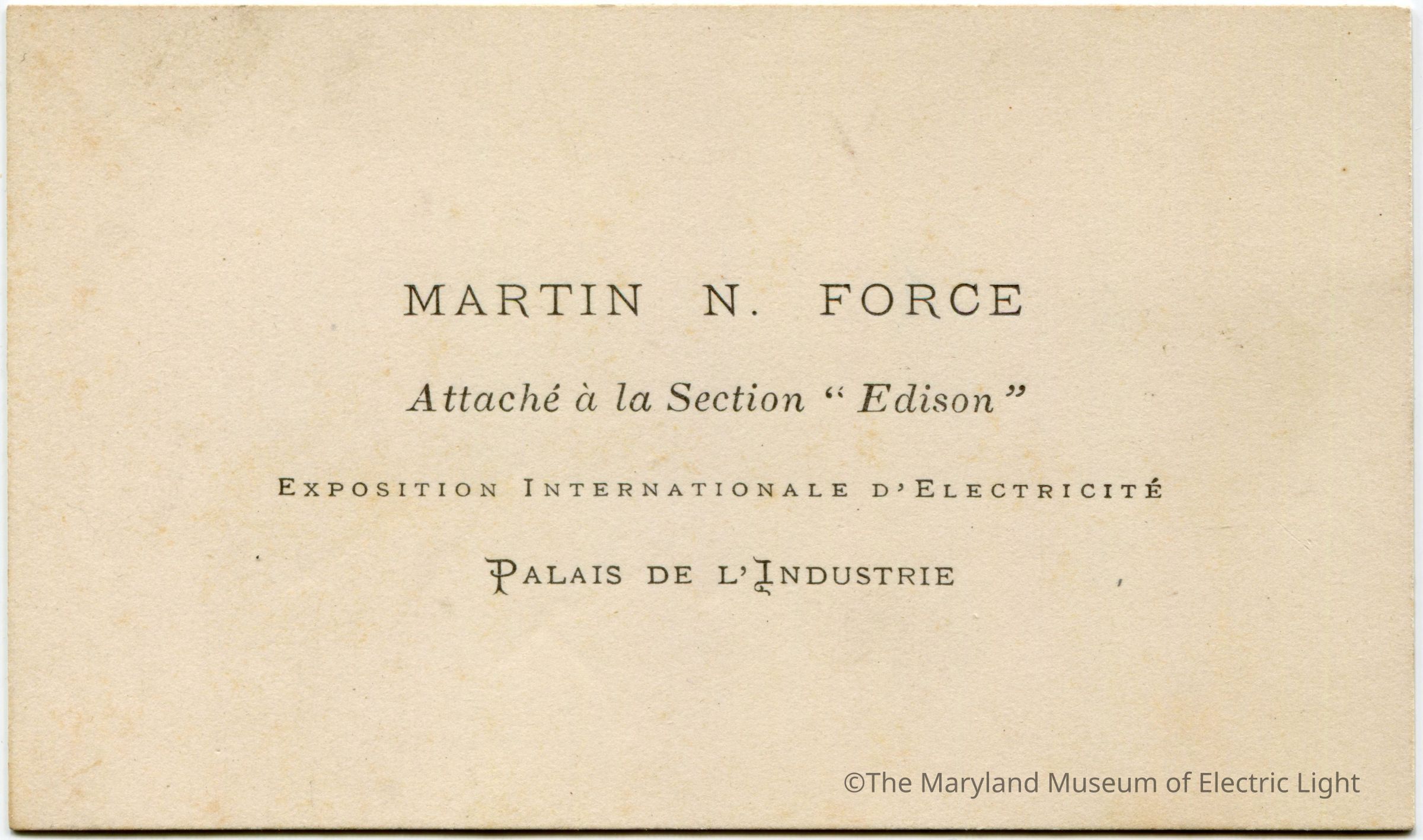 Martin Force 1881 Parris Exhibiton Edison Co. Calling Card