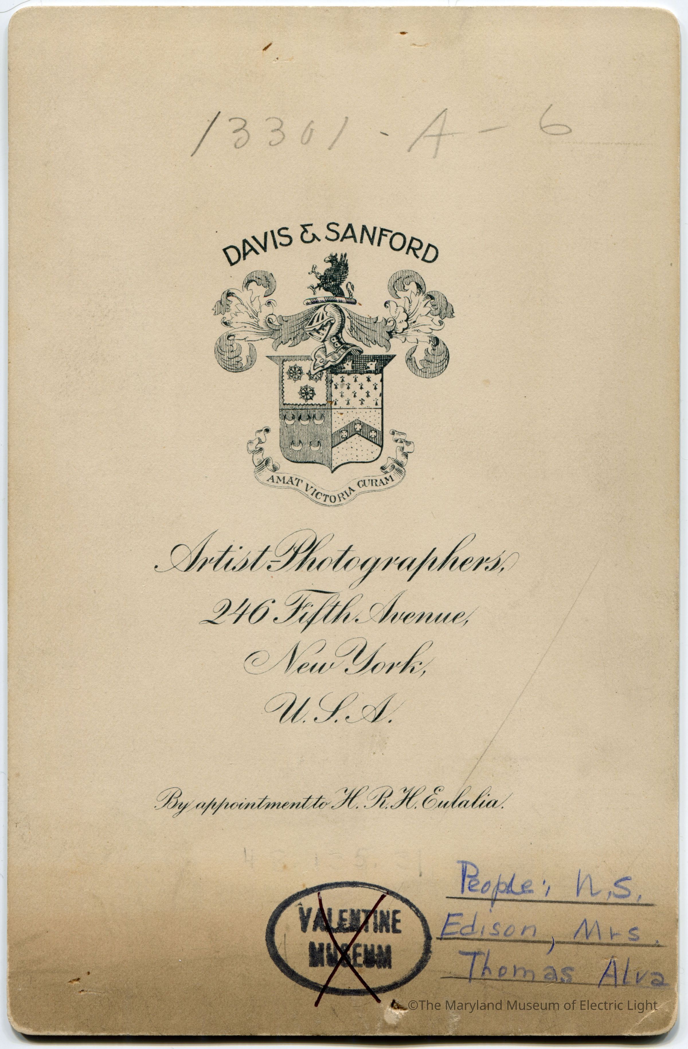 Minal Miller Edison Cabinet Card Photograph C. 1886Entry/Object ID