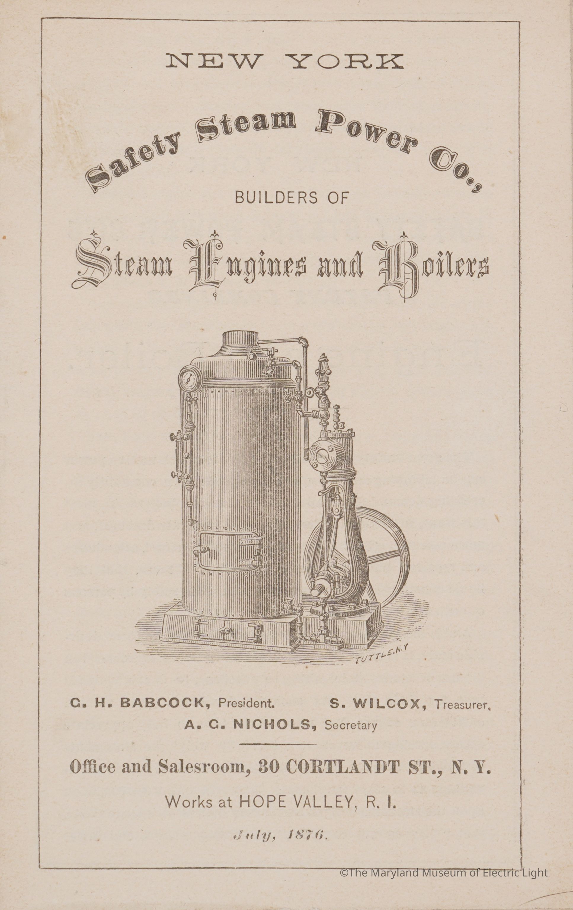 New York Safety Steam PowerCo., Builders of Steam Engines and Boilers