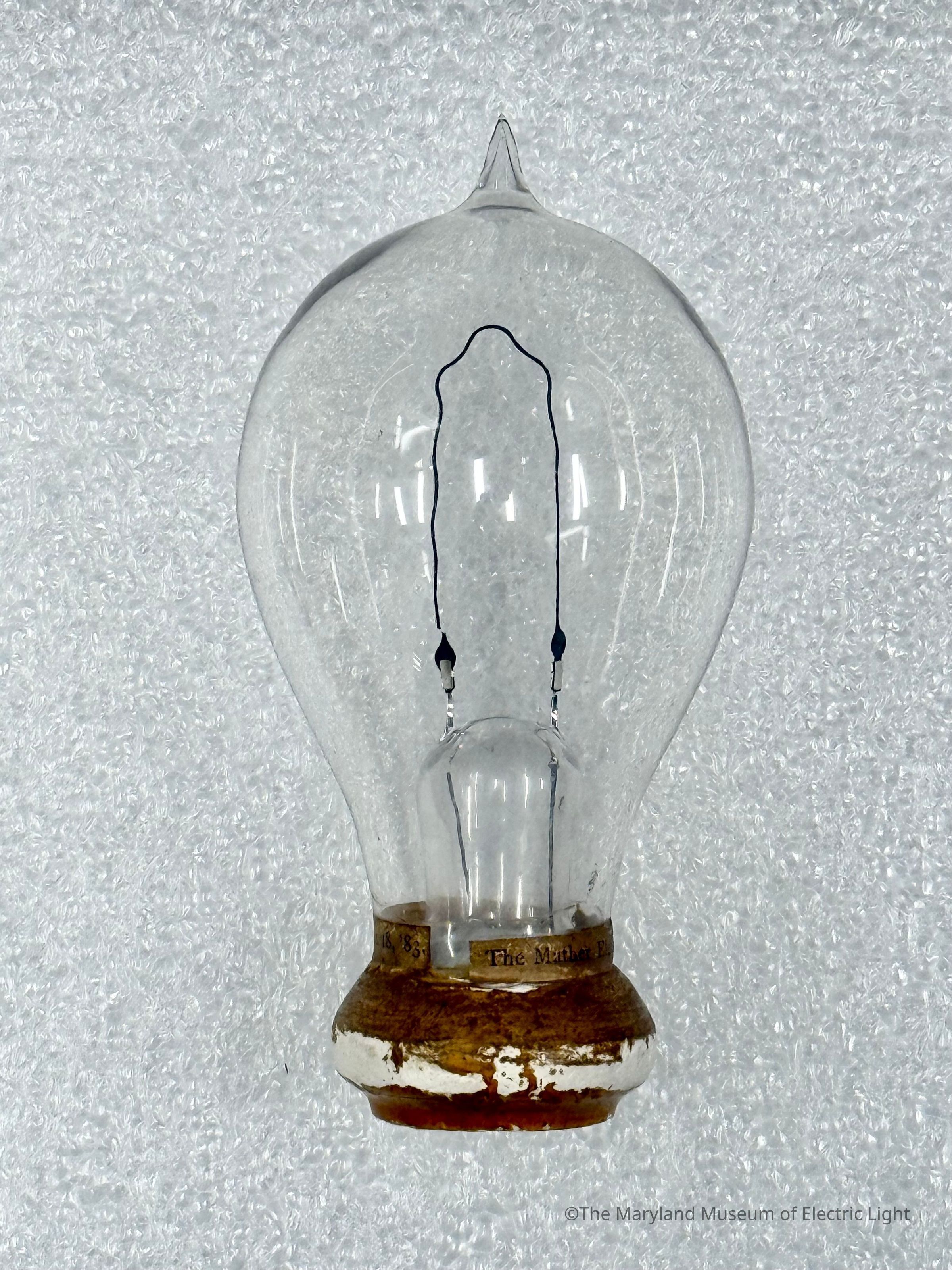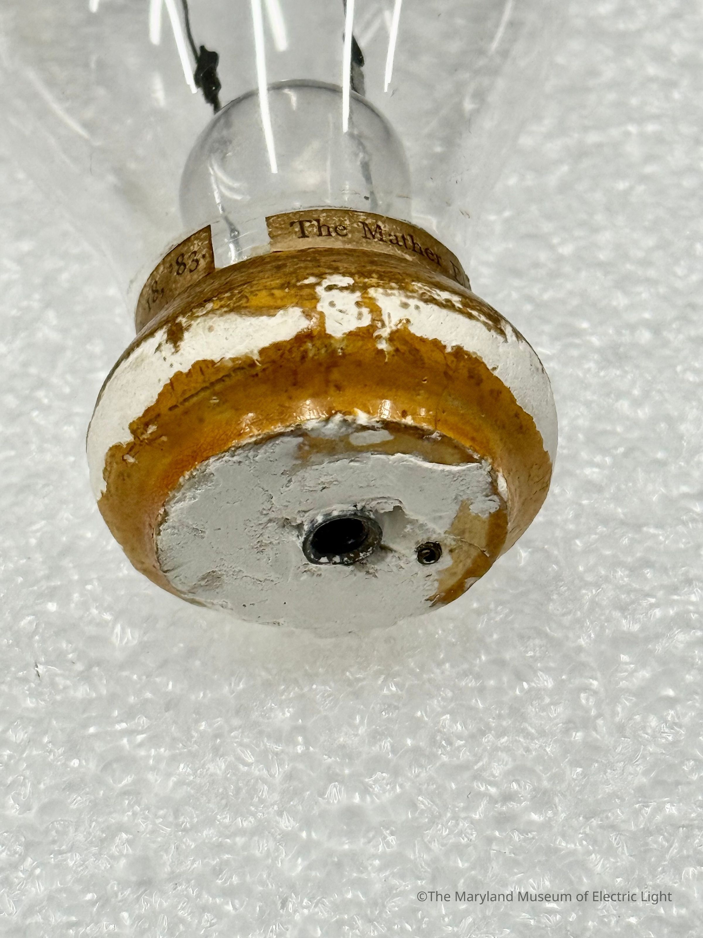 c.1885 Perkins lamp with early base with famle threaded center attachment/contact and secondary spring contact. Filament open.Made/Created