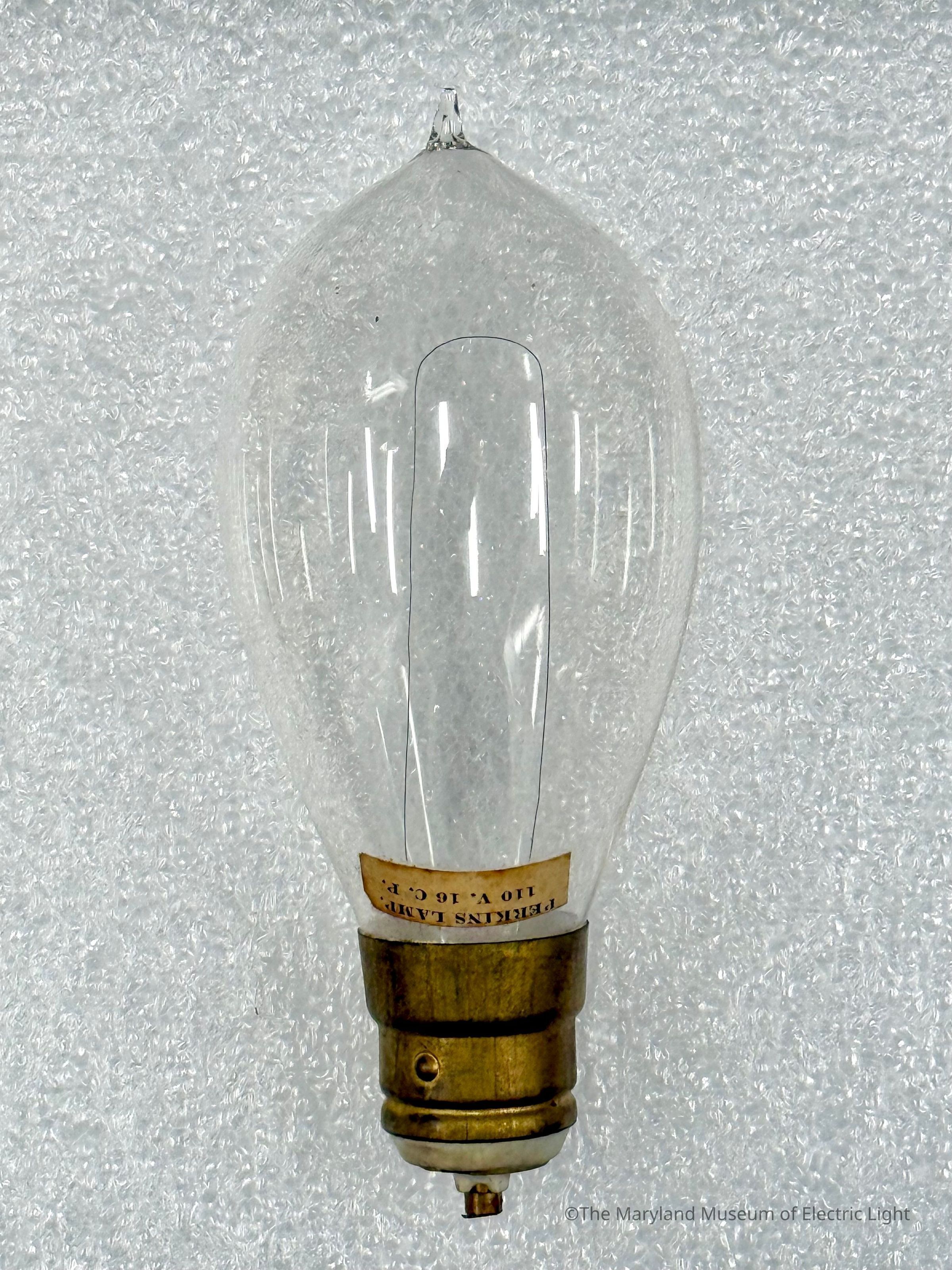 Perkins lamp with internal date label of x/x/x. Base is for the United States Electric Lighting Co type spcket.