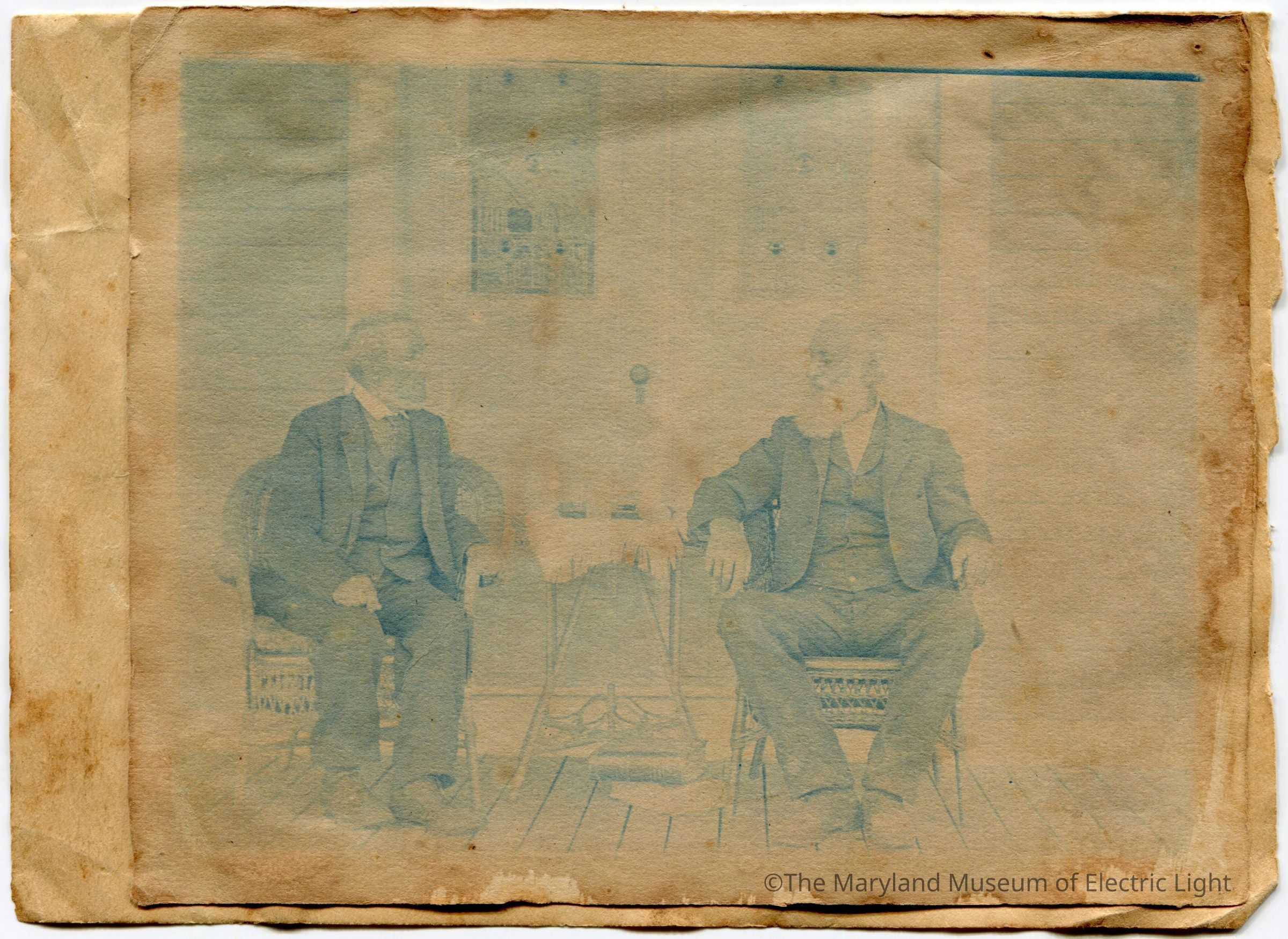 Cyanotype photograph of Samuel Edison and friend.