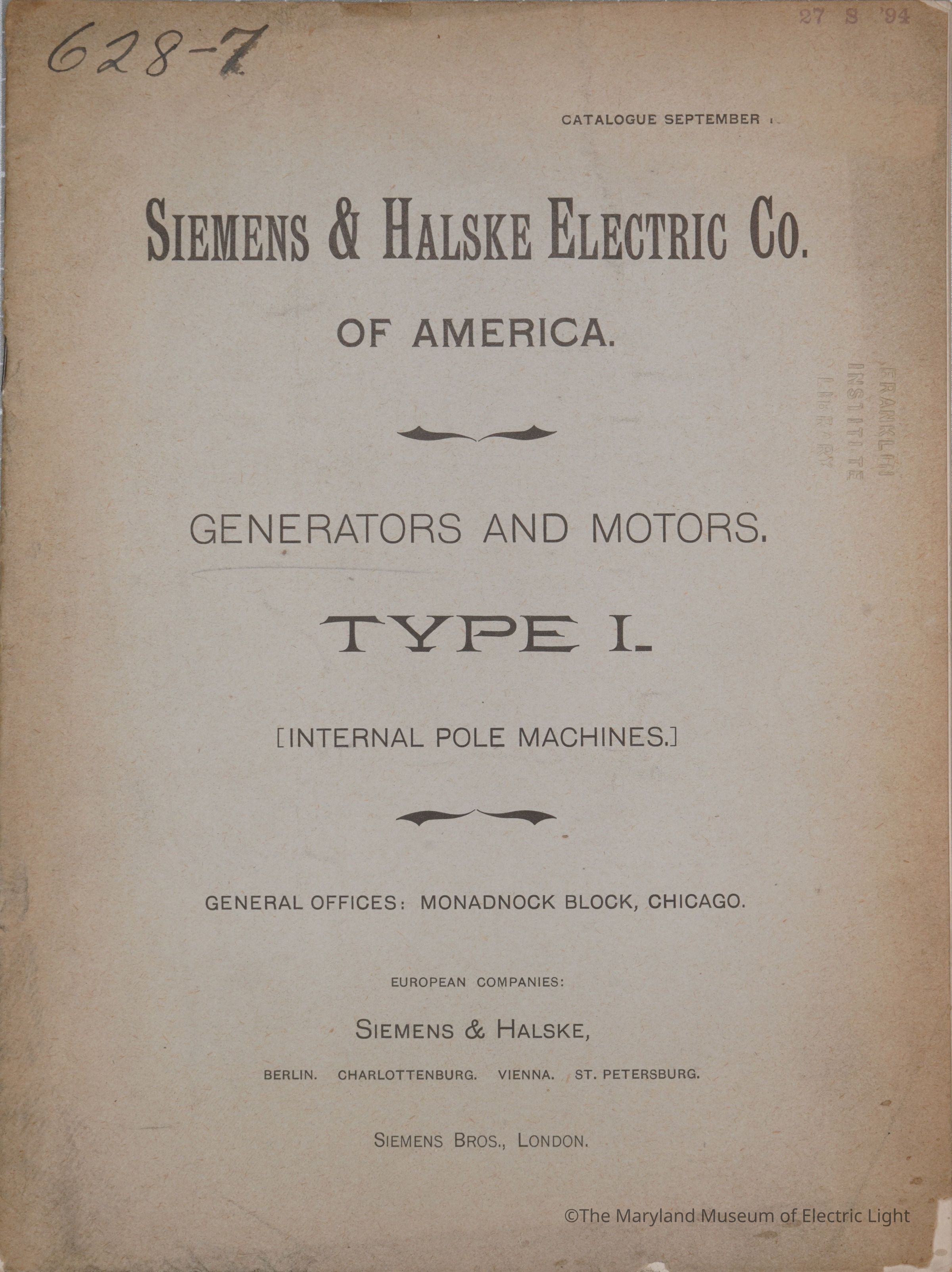 Siemens & Halske Electric Co. of America- Generators and Motors - Type I