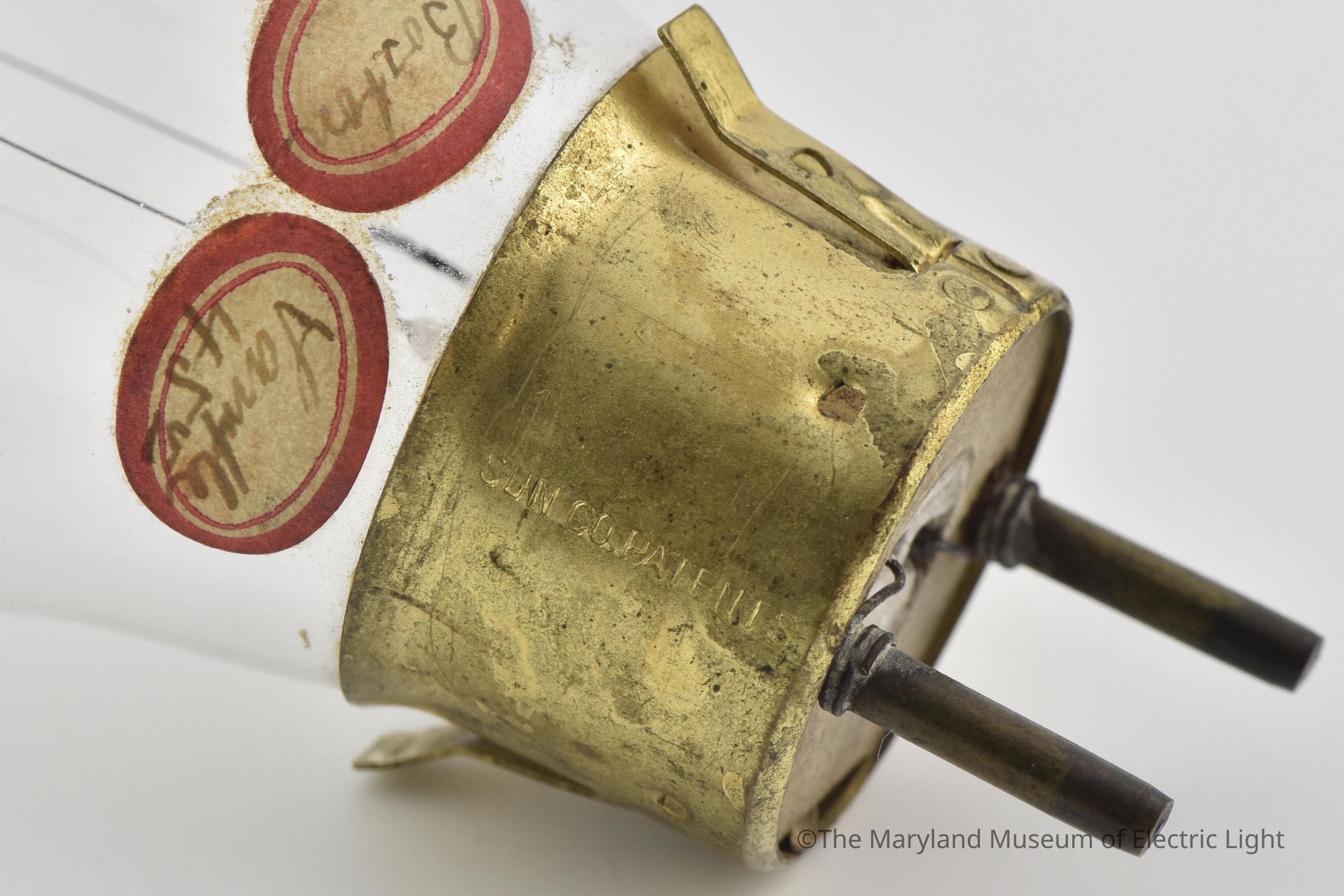 Sun electric lamp, base unique to Sun system, existing for about one year in 1888