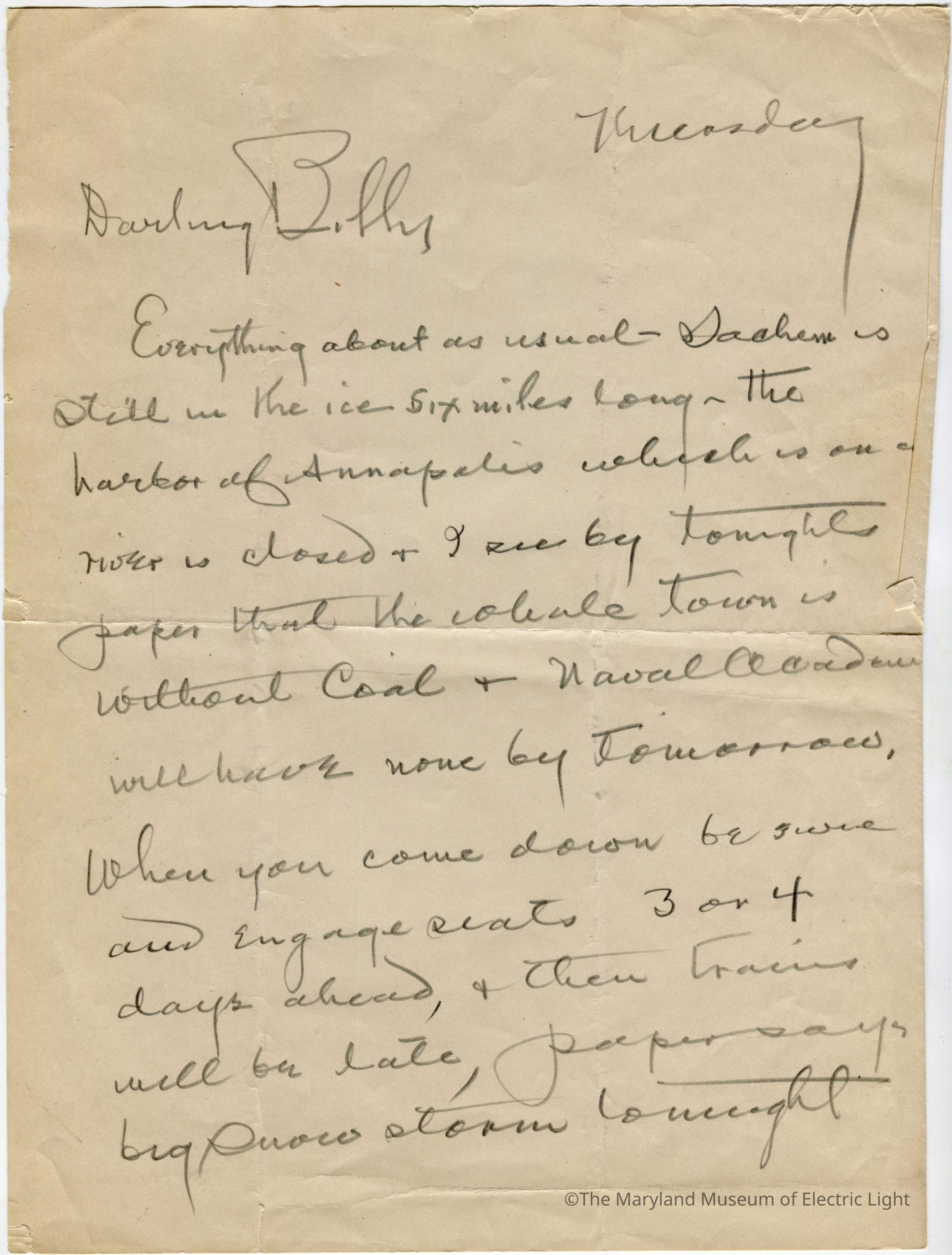 Letter from TAE to Mina Miller Edison (Billy). Circa 1917 based on Naval Academy discussion.