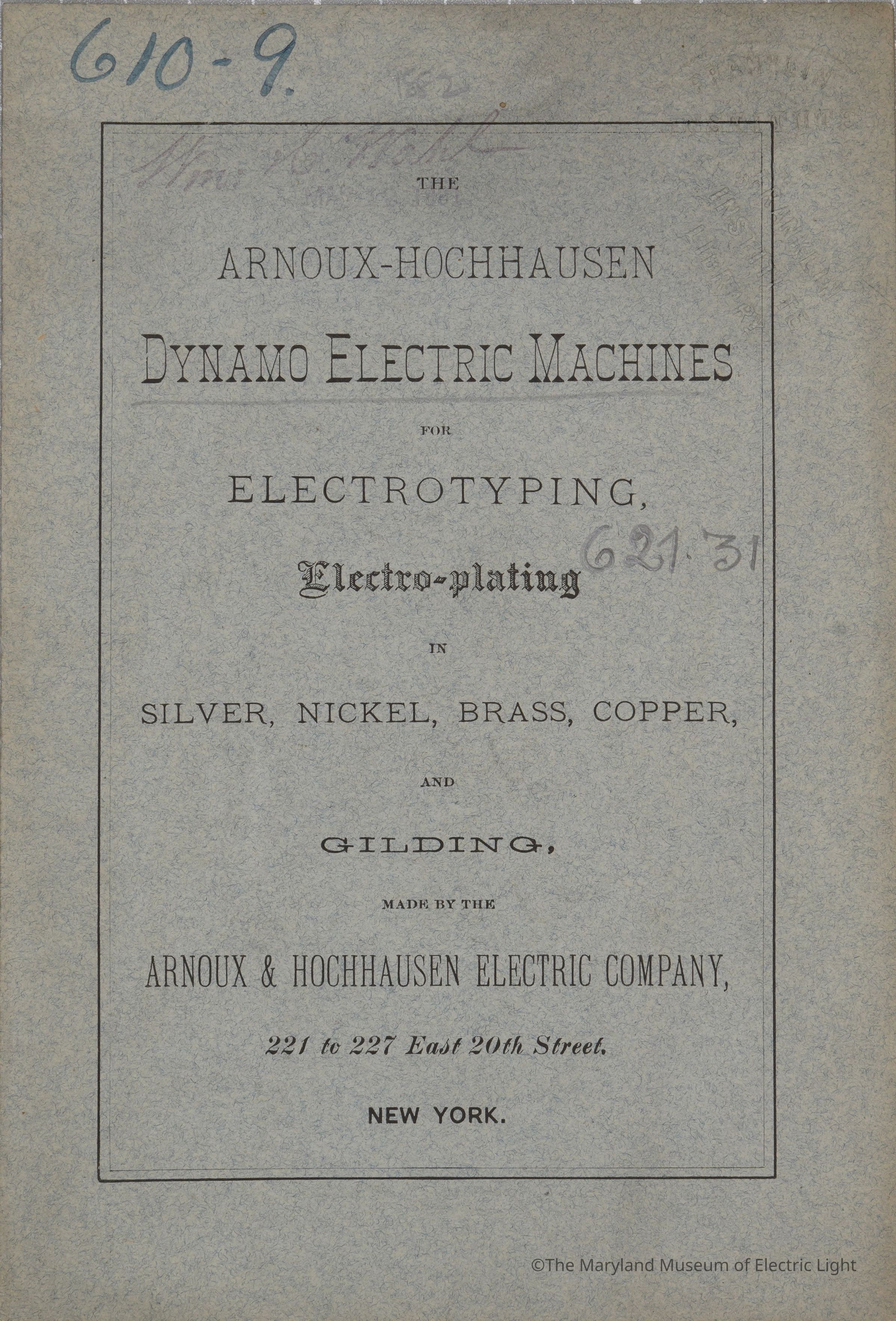 The Arnoux - Hochhausen Dynamo Electric Machines for Electrotyping Electro-Plating