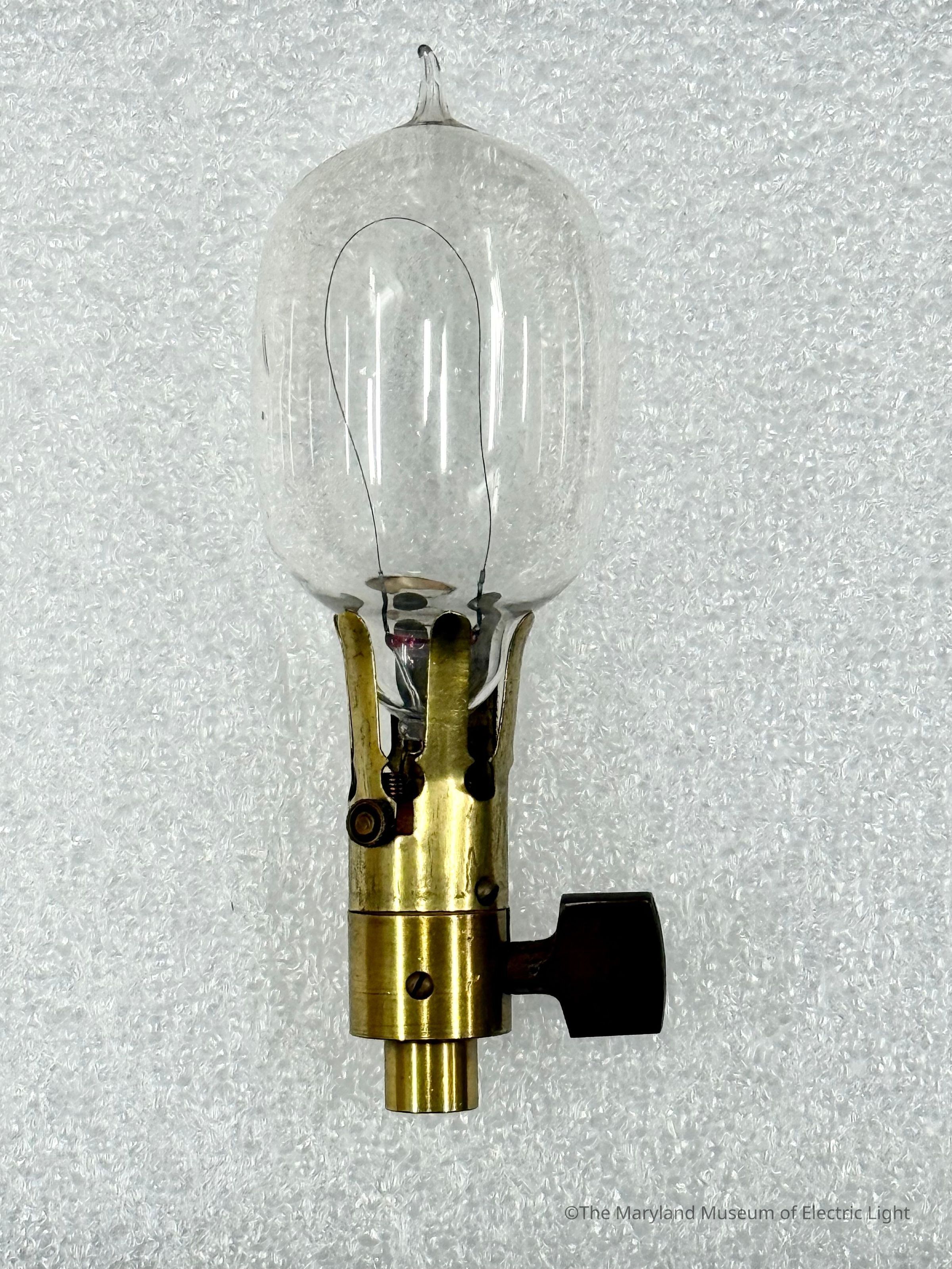 Early 1st generation Thomson Houston lamp with "hook-eye" attachment method. (note: lamp holder accession number xxx)Made/Created
