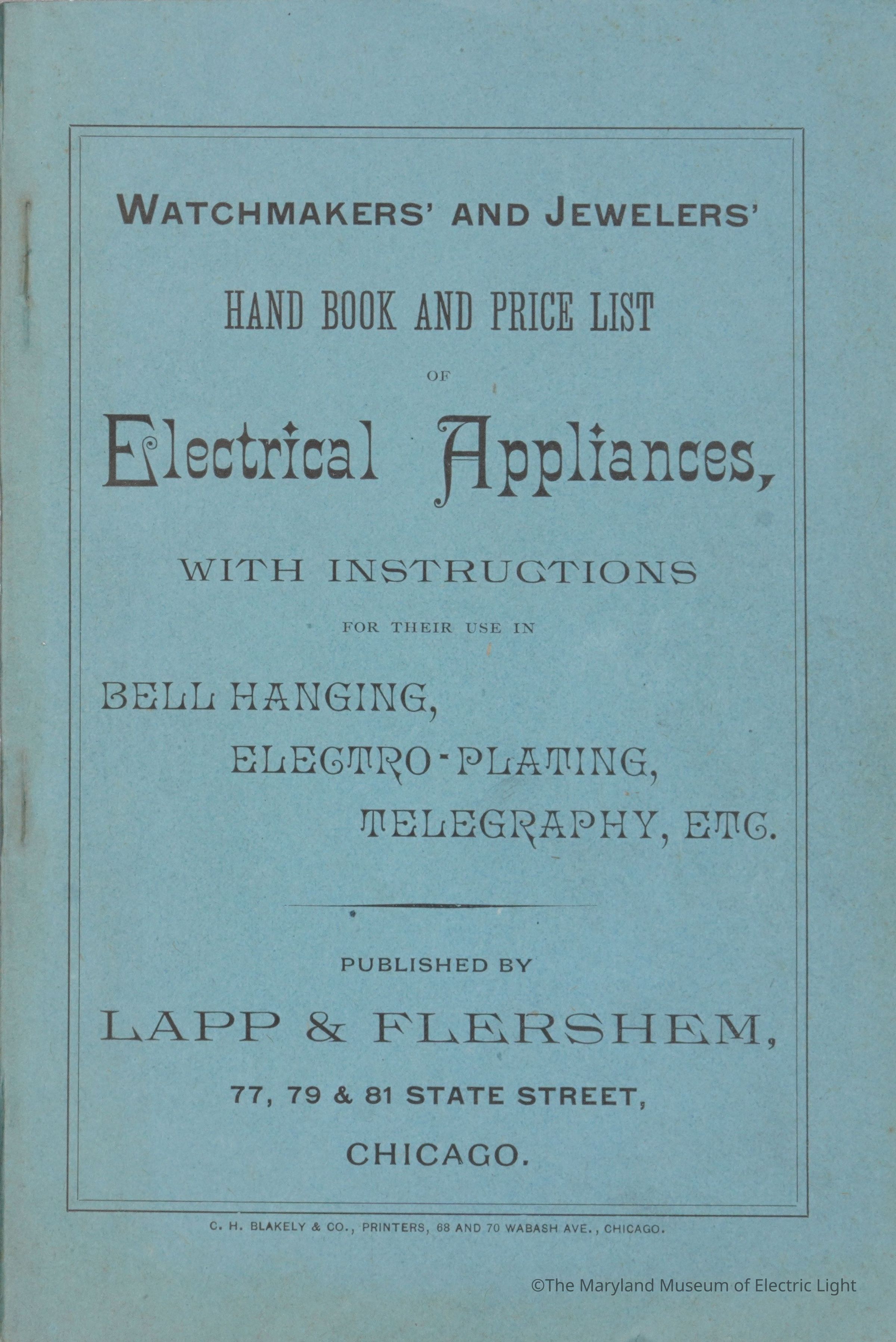 Watchmakers' and Jewelers' Hand Book and Price List of Electrical Appliances