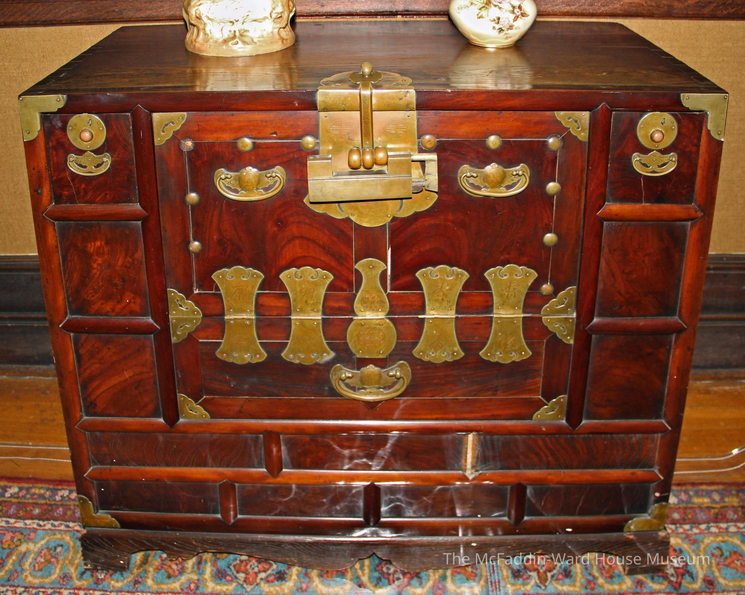 Mamie's hope chest, technically Korean bandaji chest, teakwood and brass, ca. 1900