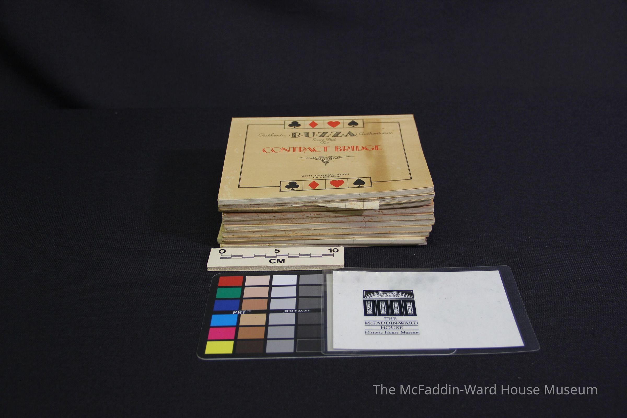 Scorebook, beige paper, inscription "Authentic BUZZA Authoritative/ Score Pad/ For/ Contract Bridge/ With Official Rules/ On Next PageContext