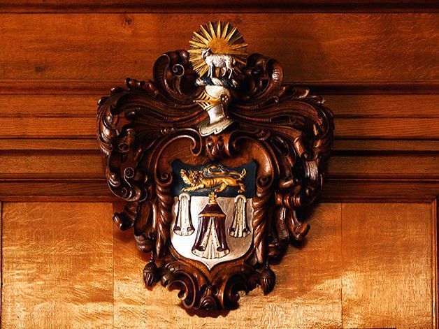Robert Cooke’s original grant of arms of 1586 is still kept in the Muniment Room at the Hall. This document explains that the old coat of arms was replaced because they were ‘overmuch intricate, with confused mixtures of too many things in one shield’. All Cooke did was move the Holy Lamb from the chief to the crest, remove the religious banner, and place a lion of England in the chief instead. Some other livery companies were happy to keep pre-Reformation religious symbolism in their heraldry.