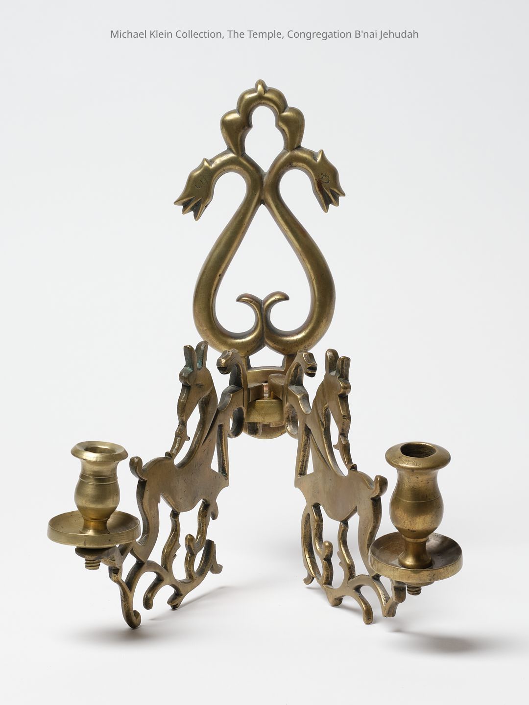 Wall lamp with deer. Could be for home or synagogue. Matches chandelier. Reference: Jewish Ritual Art - Michael Keen (in the Victoria and Albert Museum), page 33 - 14 and 15. Identified as synagogue wall sconce.Made/Created