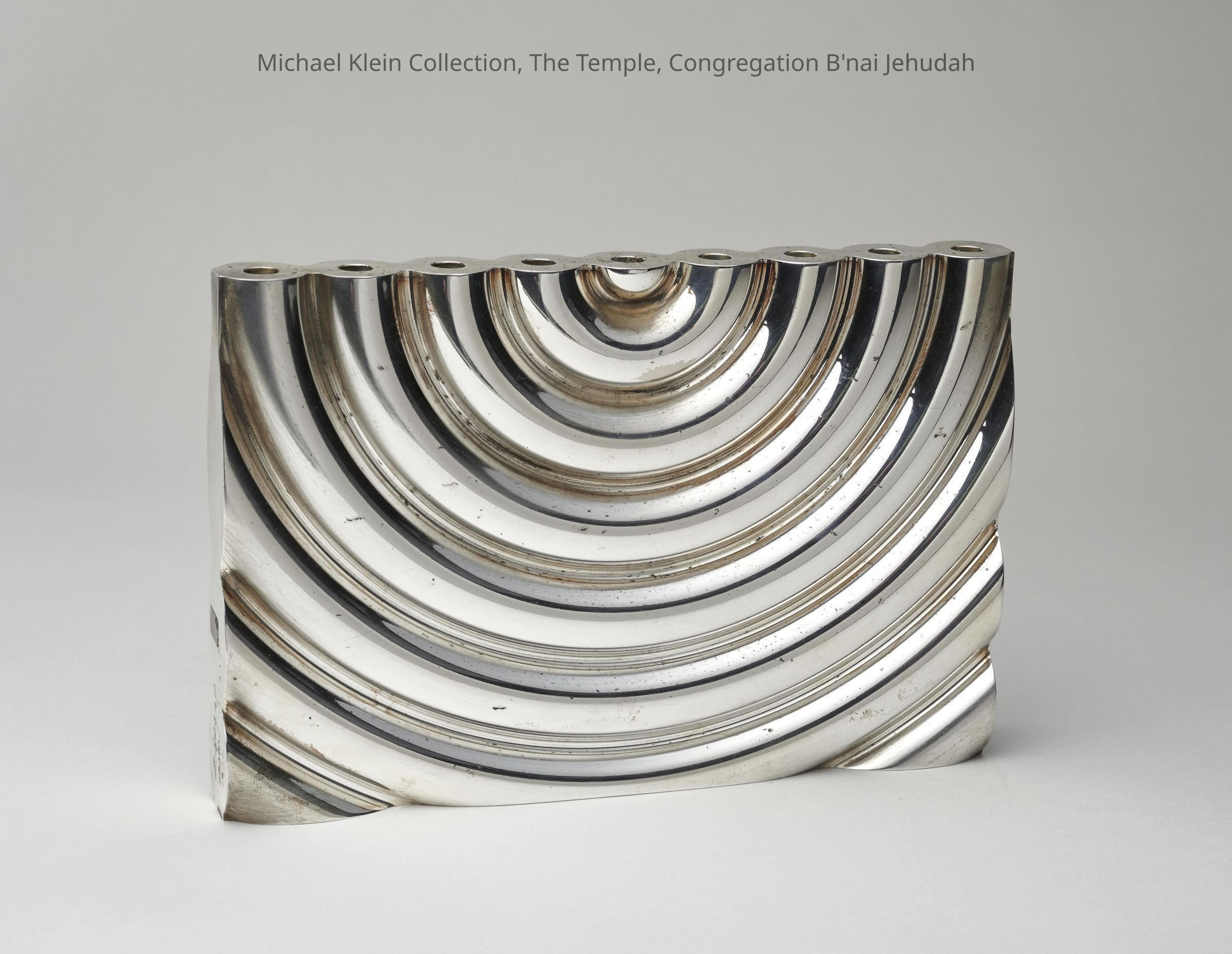Metal plank with thick texture forming branches of menorah, candleholders on top edgeMade/Created
