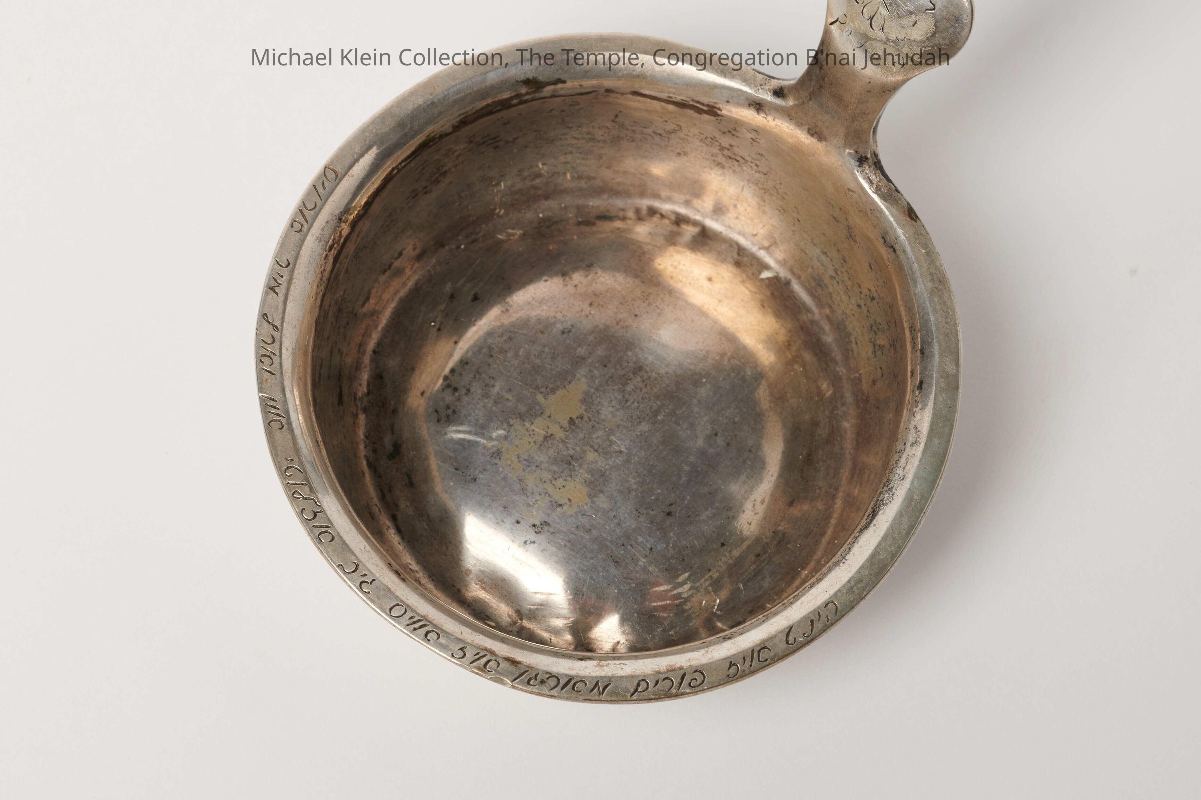 Engraved in Yiddish, "Today is Purim, tomorrow is not, so give me a Zlota and throw me out."Made/Created