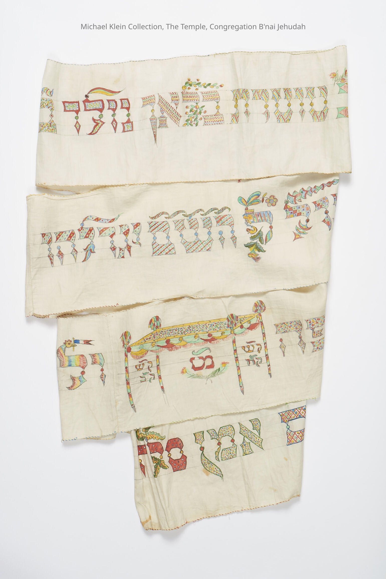 These textiles, used for keeping a Torah tightly closed when it isn't in use, date from 1901, 1889, 1894, and 1870.Made/Created