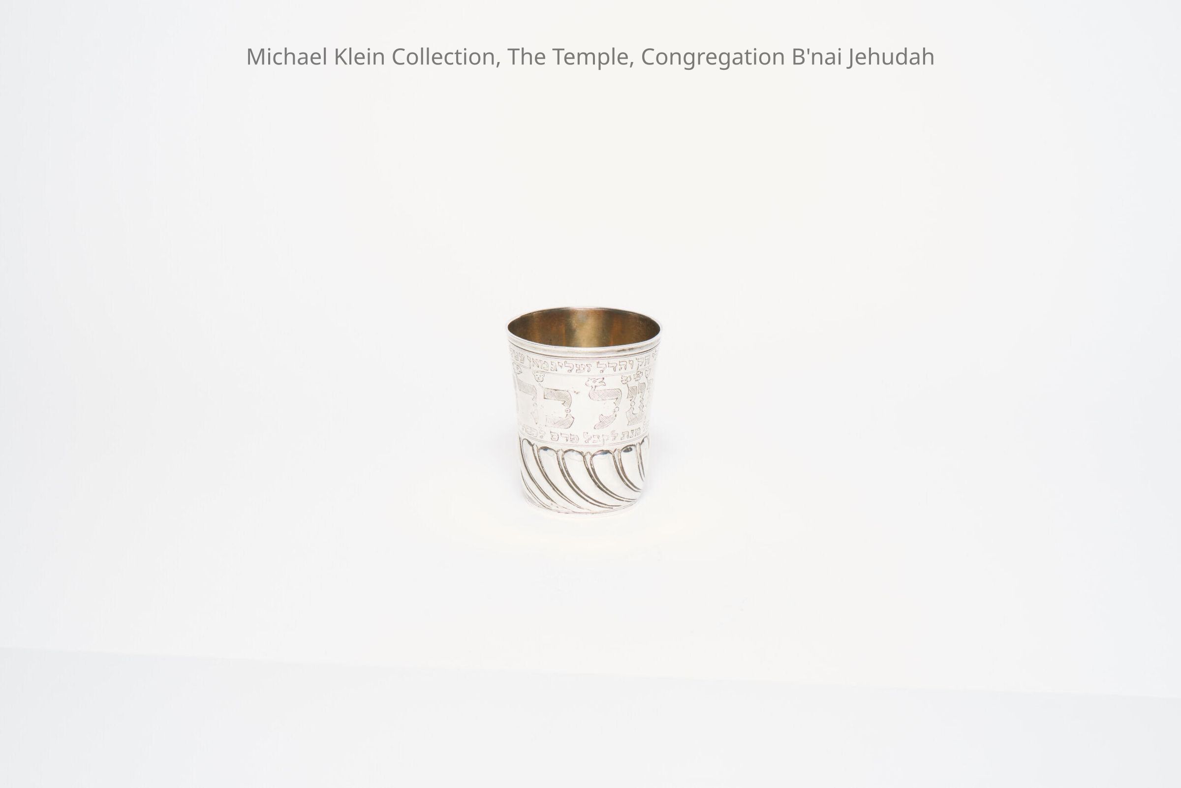 The cup was originally made in the late 17th or early 18th century, and an engraving was added later, probably in the 19th century. In addition to a circumcision scene, the cup is engraved with "Cup of Blessing" (large text in the middle); "This cup, I bought myself, the humble Zeligman Ettling, for Good Deeds" (small text on rim); and "And not for any retribution, but to honor the Almighty and His Torah" (small text on bottom).