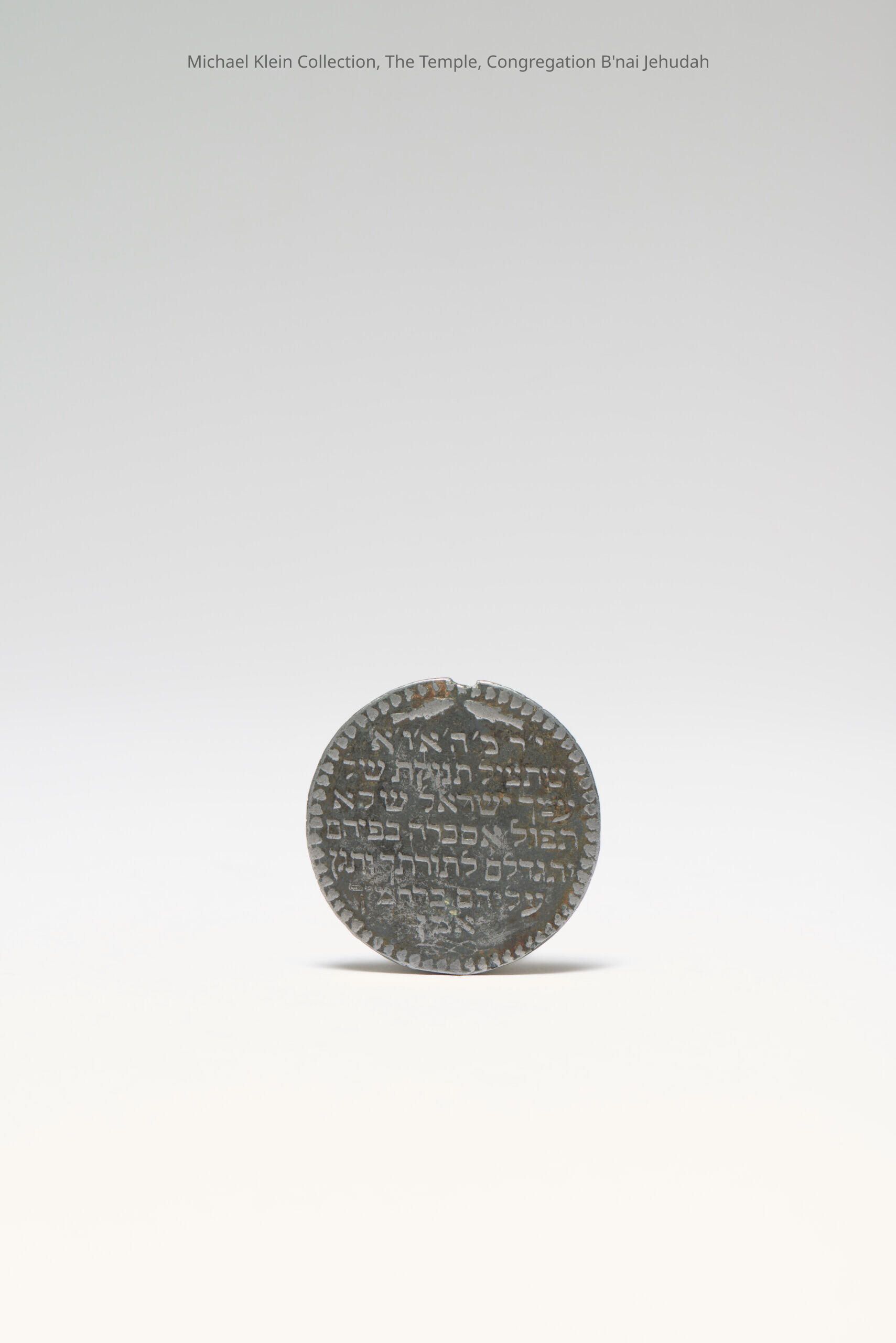 Inscription: “May this boy grow up for the Torah, the Chupa, and for good deeds.” back: “Save the children of the people of Israel from the evil eye and from sickness and watch over them. Amen.”Made/Created